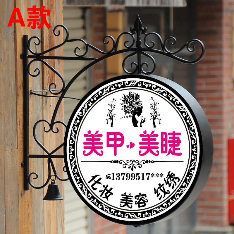 为您提供商品欧式 户外美甲美睫悬挂门头招牌定做 铁艺圆形灯箱LED广告牌挂墙式的详细介绍,