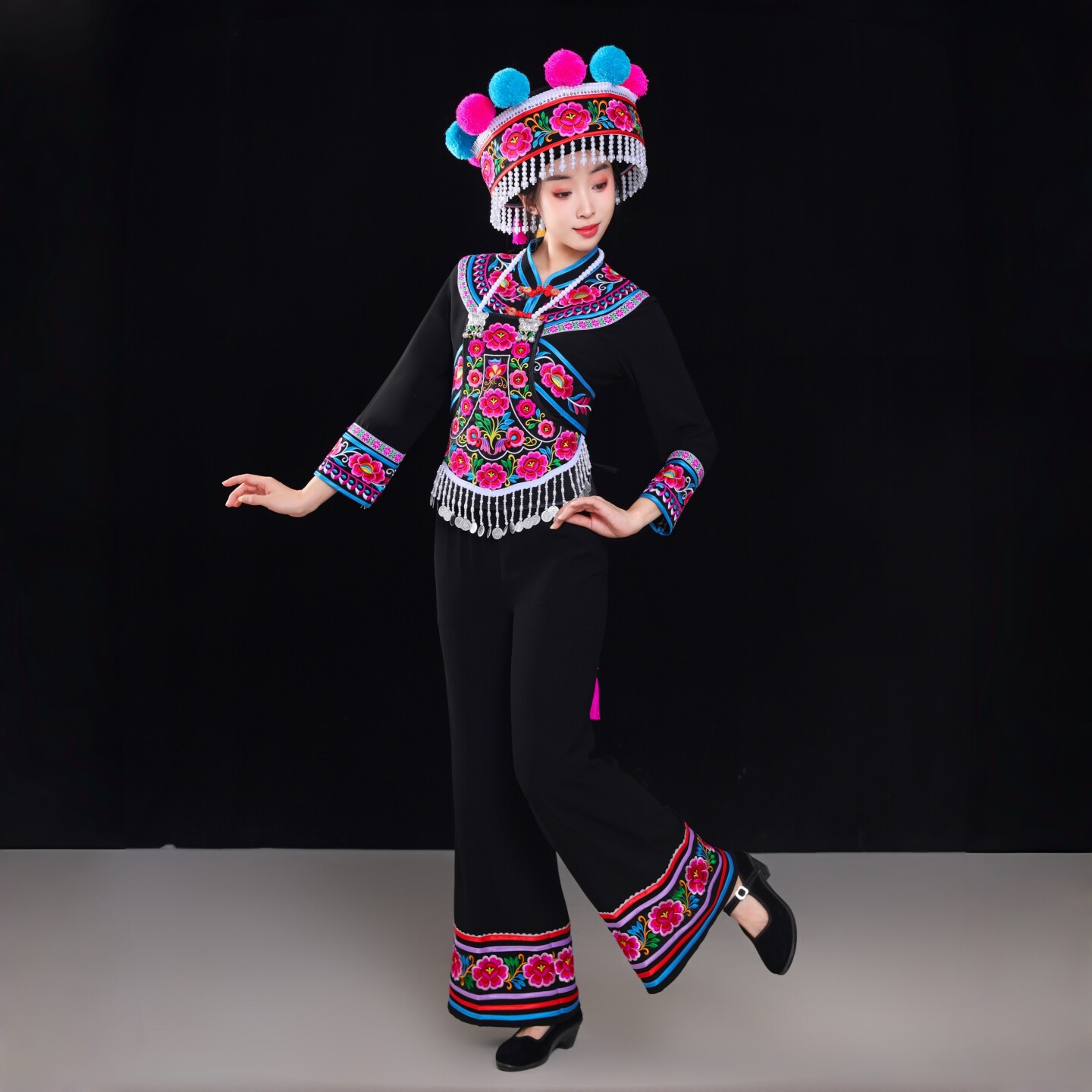 云南楚雄彝族左脚舞服装 女士 一整套彝族打歌服刺绣民族演出服套装