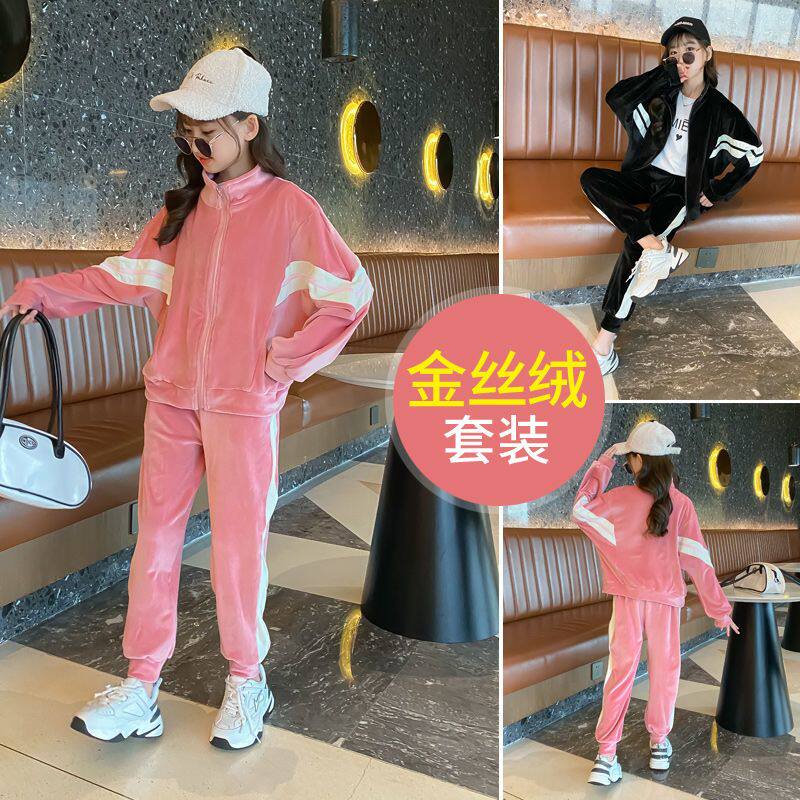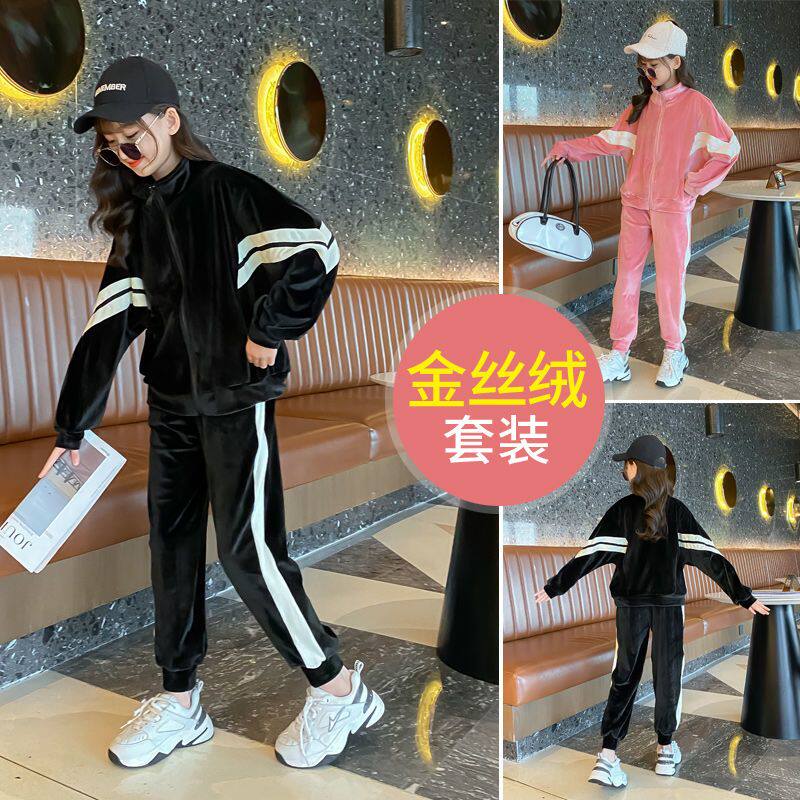儿童金丝绒套装 洋气中大童小女孩休闲两件套 春秋新款 女童运动套装