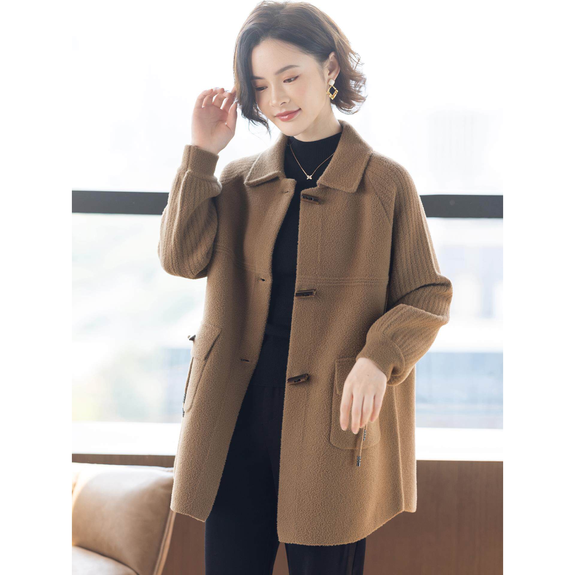 中年妈妈春装 50岁洋气中老年女装 春秋短款 双面呢大衣 外套2026新款