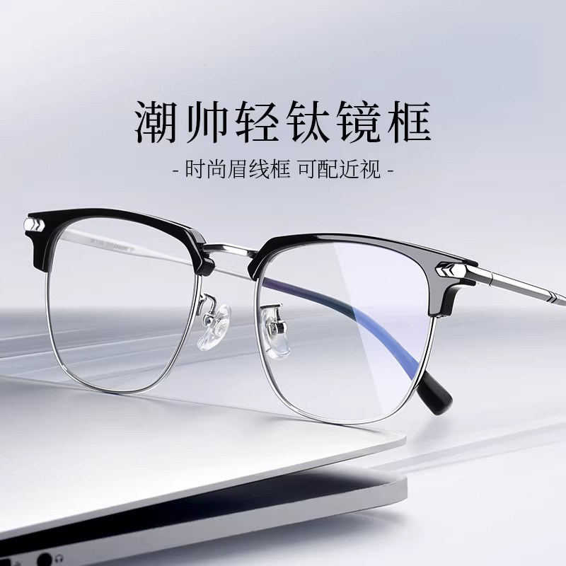 为您提供商品可配度数镜片专业网上配防蓝光眼睛架 超轻半框近视眼镜框理工男款的详细介绍,