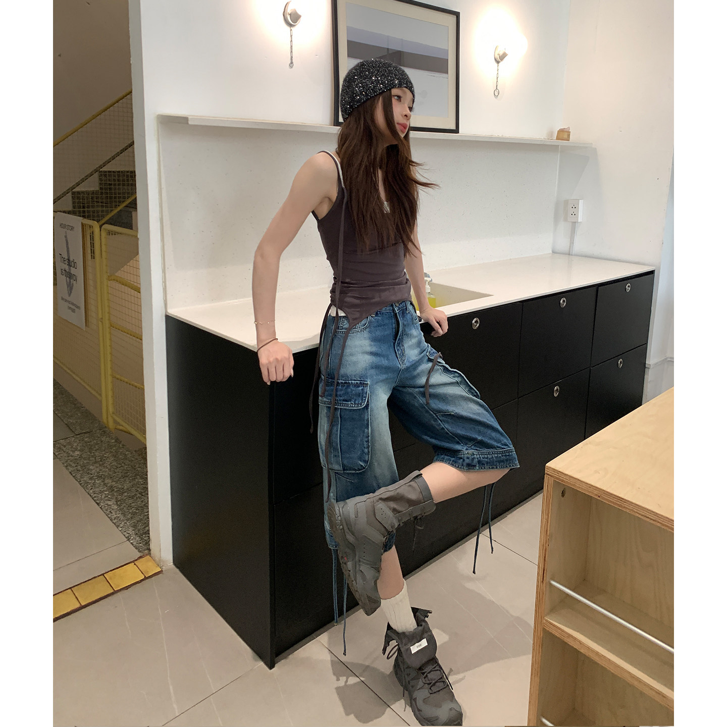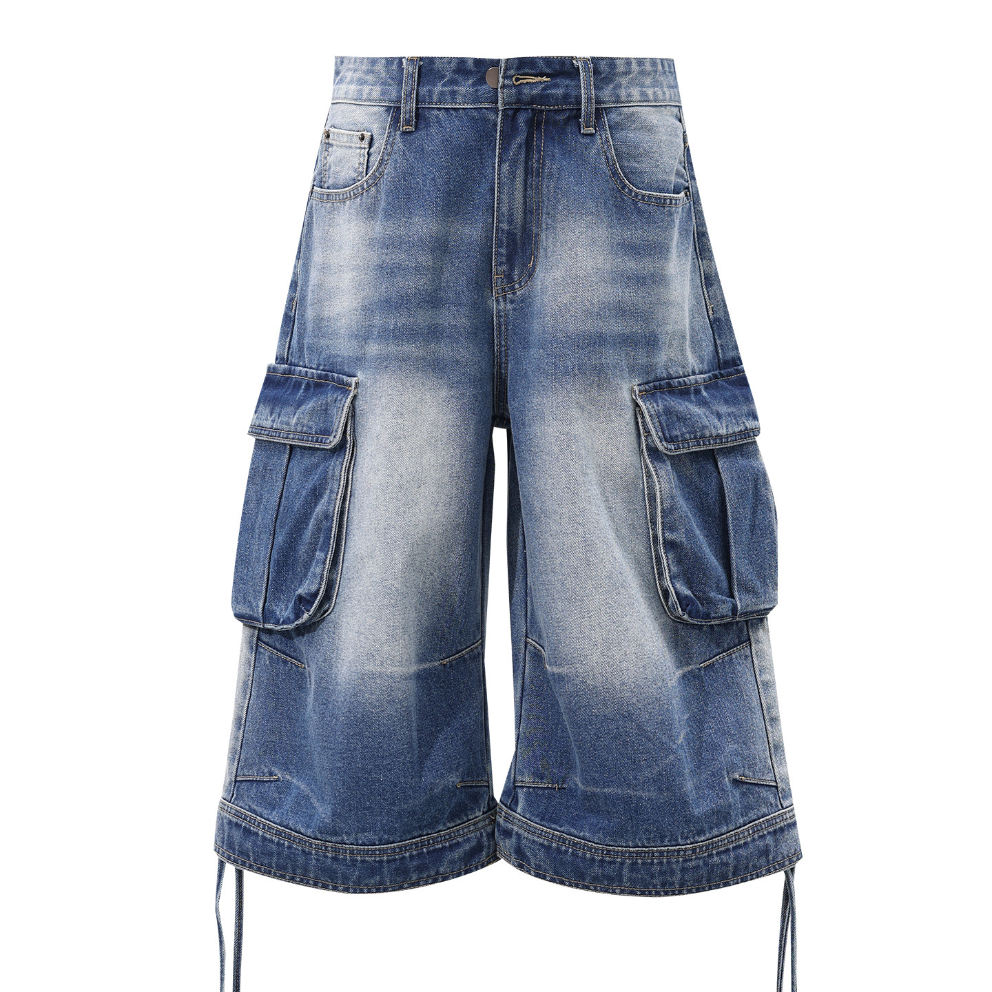 妈个鸡妈MGJM松弛感高街亚比大口袋裤 牛仔裤 男女七分裤 脚挂绳工装