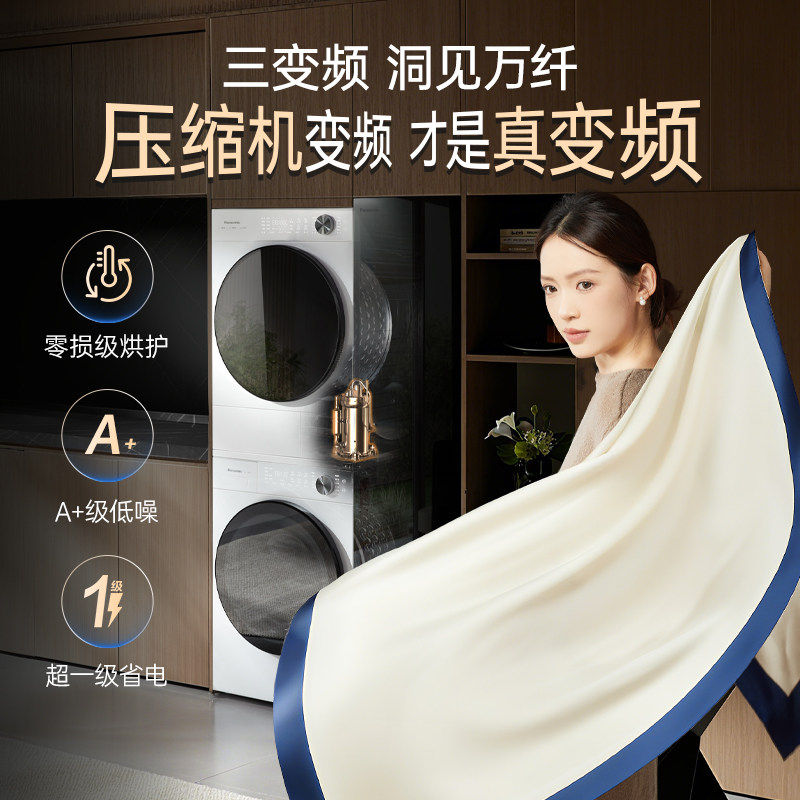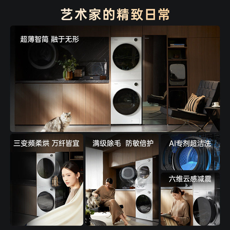 松下白月光5.0Ultra洗烘套装 10KG家用智投洗衣机除毛 103 新品
