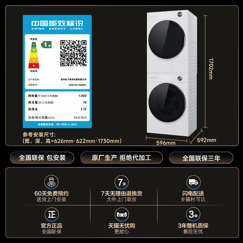 松下白月光5.0Ultra洗烘套装 10KG家用智投洗衣机除毛 103 新品由