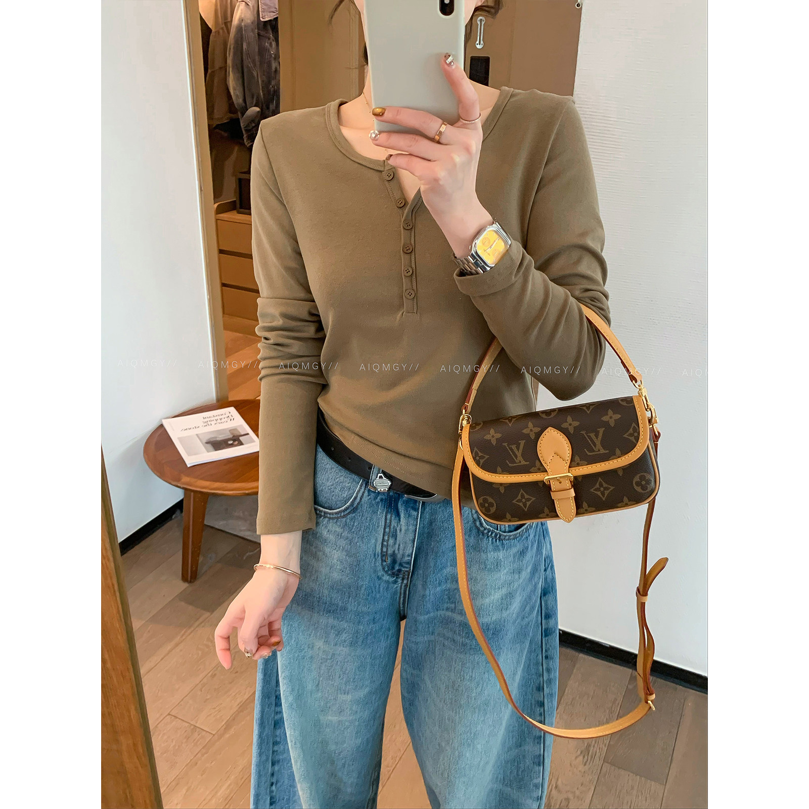 新款 爱情魔鬼鱼 纯色长袖 半开领T恤女2026年春季 百搭收腰上衣 时尚
