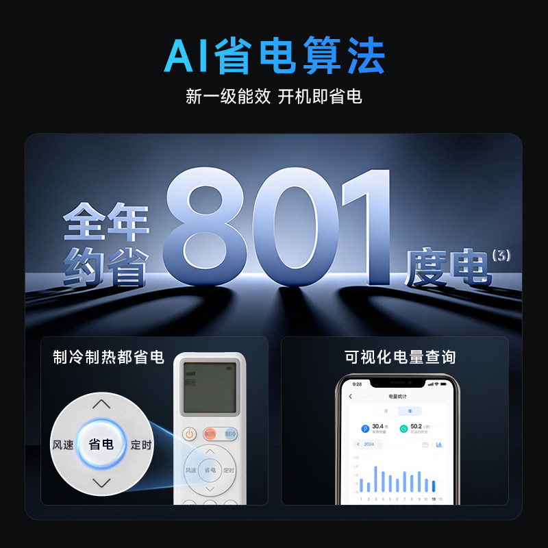 华凌空调超省电1.5匹35HA1Ⅲ P新一级变频挂机家用卧室智能壁挂式