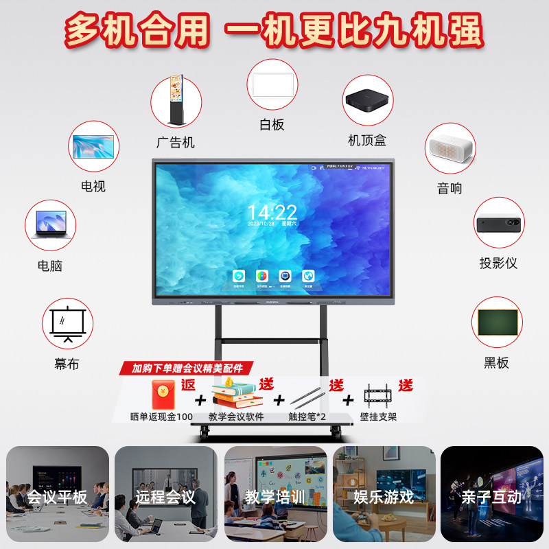 互视达55寸65寸75寸86寸多媒体教学一体机触摸一体机会议平板一体机智能电子白板会议电视电脑幼儿园触摸大屏由