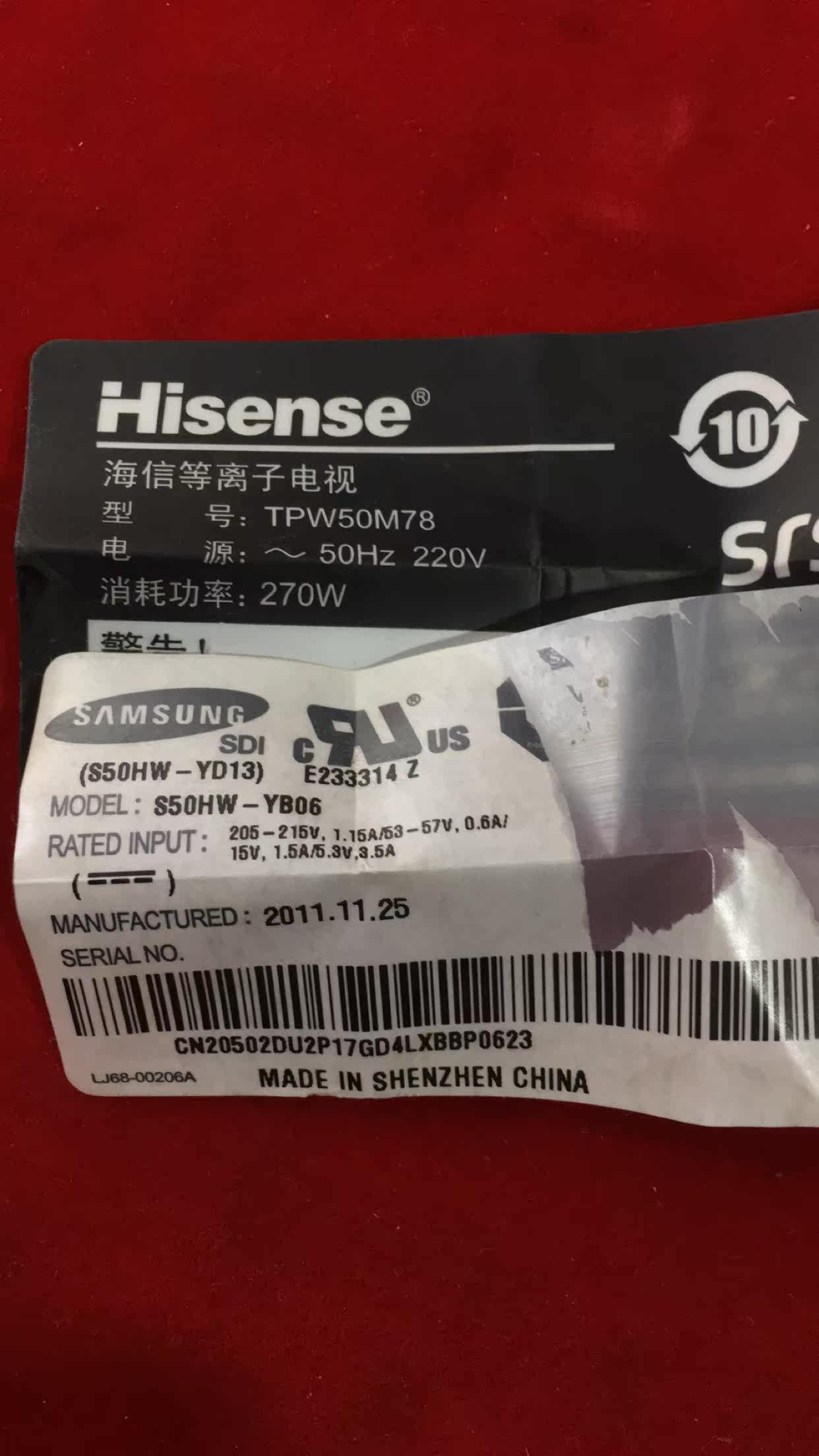 YB06 原装 YD13 RSAG7.820.2153屏S50HW 等离子主板 海信 TPW50M78由