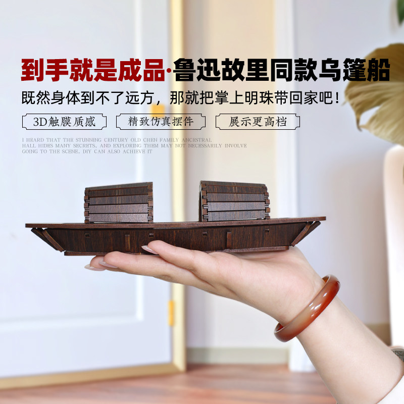迪爱歪绍兴文创乌篷船模型木制小渔船成品摆件鲁迅故里纪念工艺品