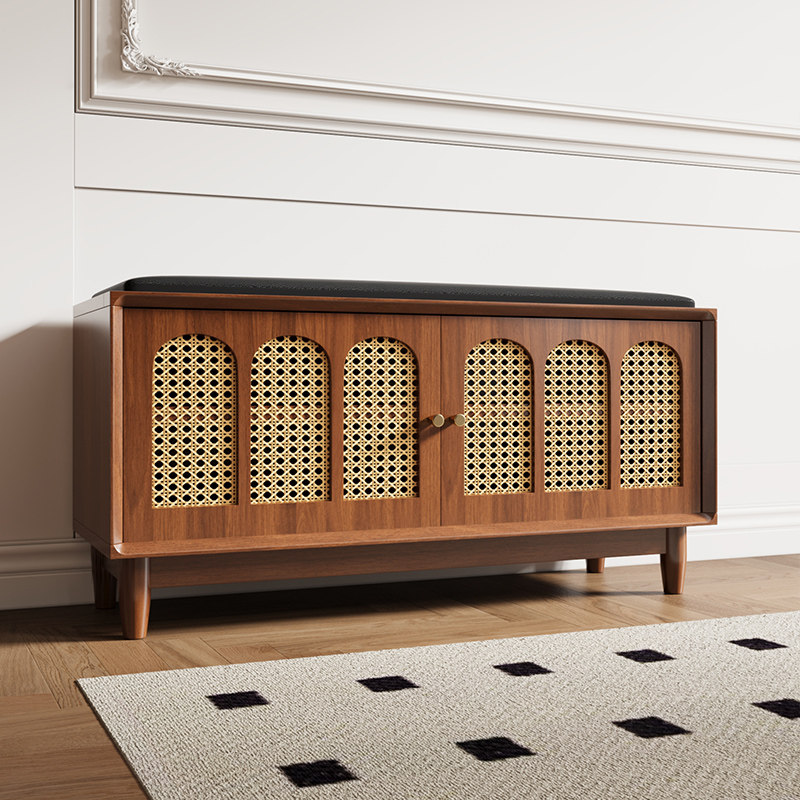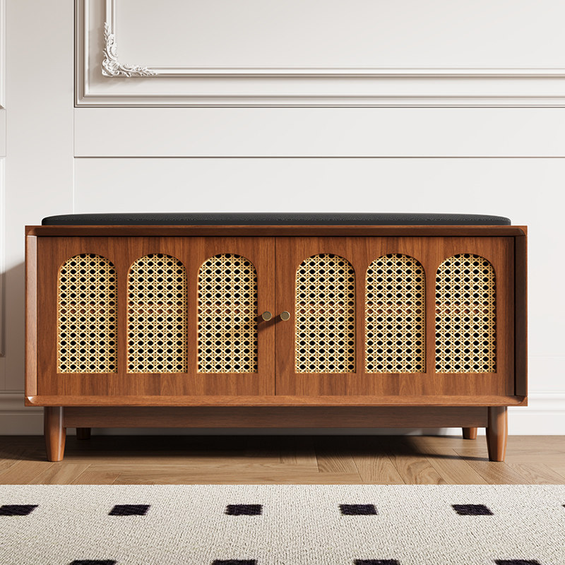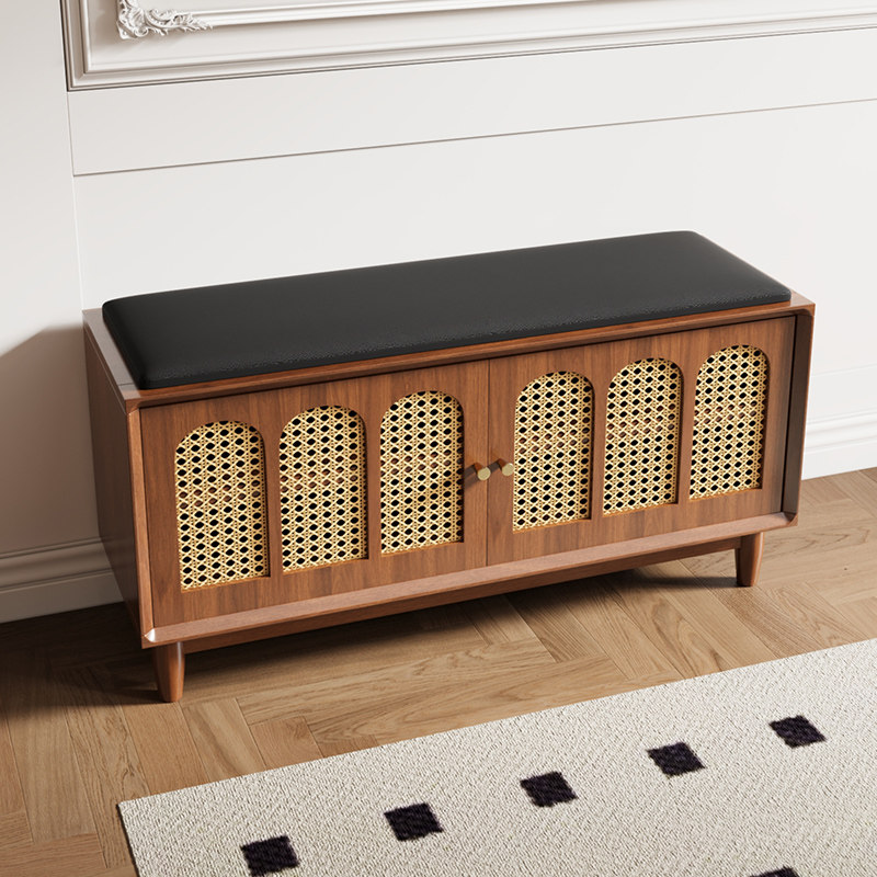 为您提供商品柜一体家用门口翻盖储物穿鞋 凳复古藤编实木中古风 凳可坐矮鞋 换鞋的详细介绍,