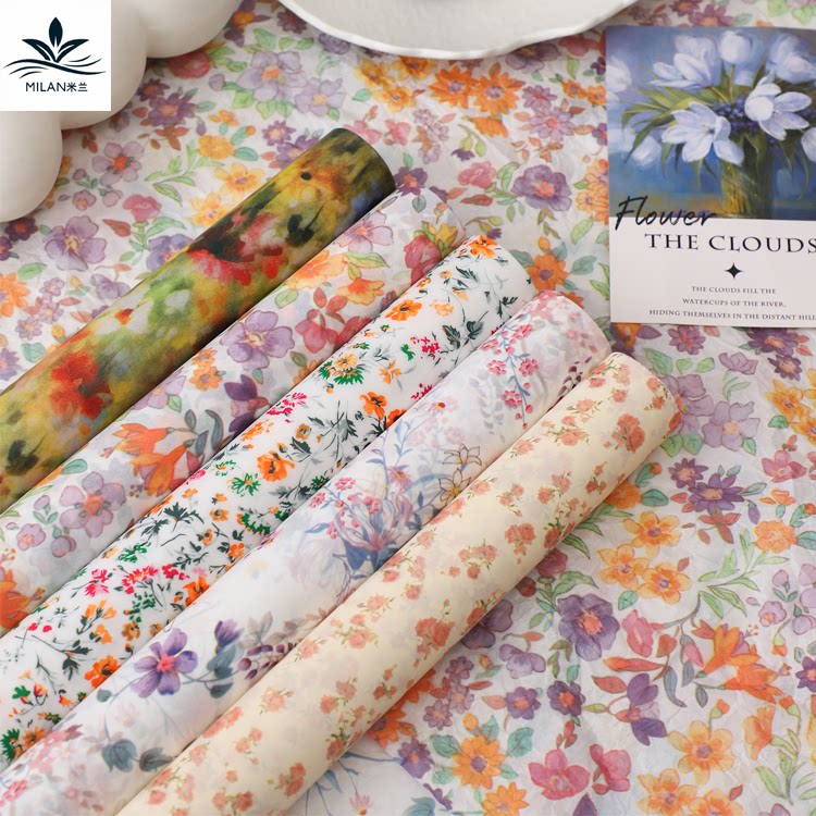 内衬纸小碎花背景纸花束包花纸 28克莫奈花园油菜花雪梨纸鲜花包装