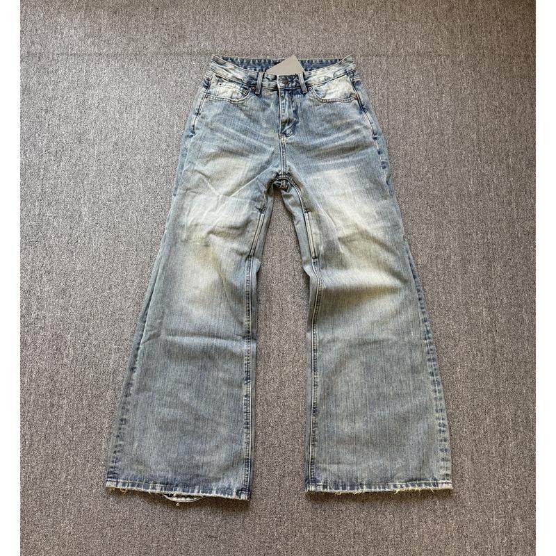 本25SS水洗后跟刀割水洗蓝色竹节棉宽松微喇中低腰牛仔裤 L高版由
