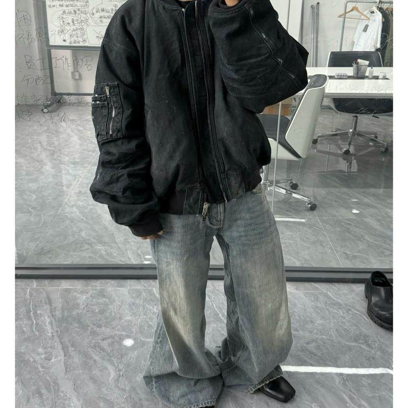 浅色水洗牛仔裤 GWIT 美式 垂感cleanfit春秋宽松直筒阔腿长裤 男士