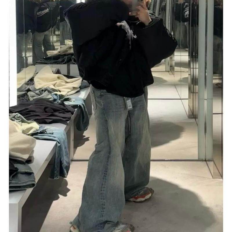 男潮牌宽松高街百搭阔腿长裤 复古解构做旧水洗牛仔裤 悟空有货美式