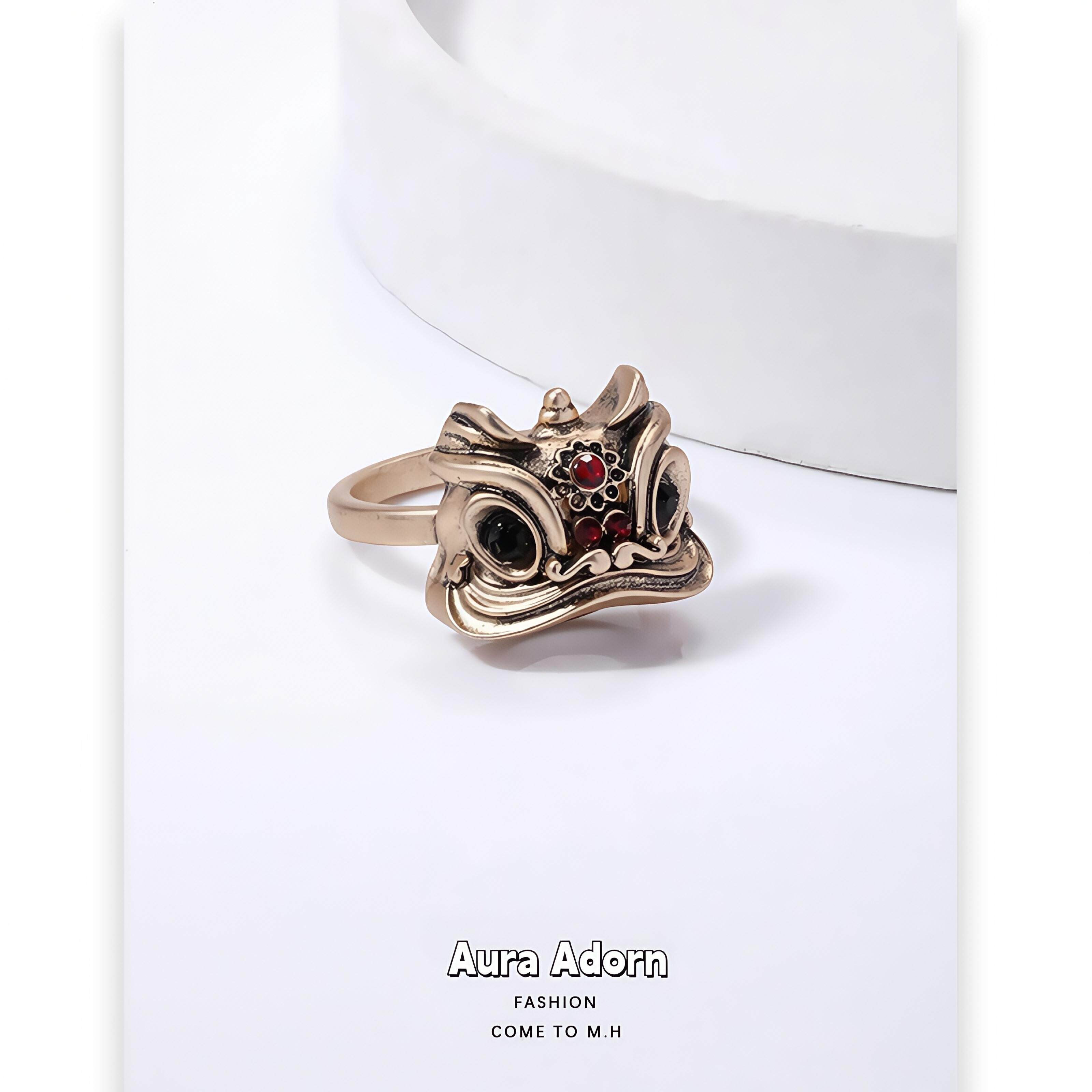 Adorn原创新年醒狮铃铛戒指食指开口戒国潮舞狮指环小众设计 Aura