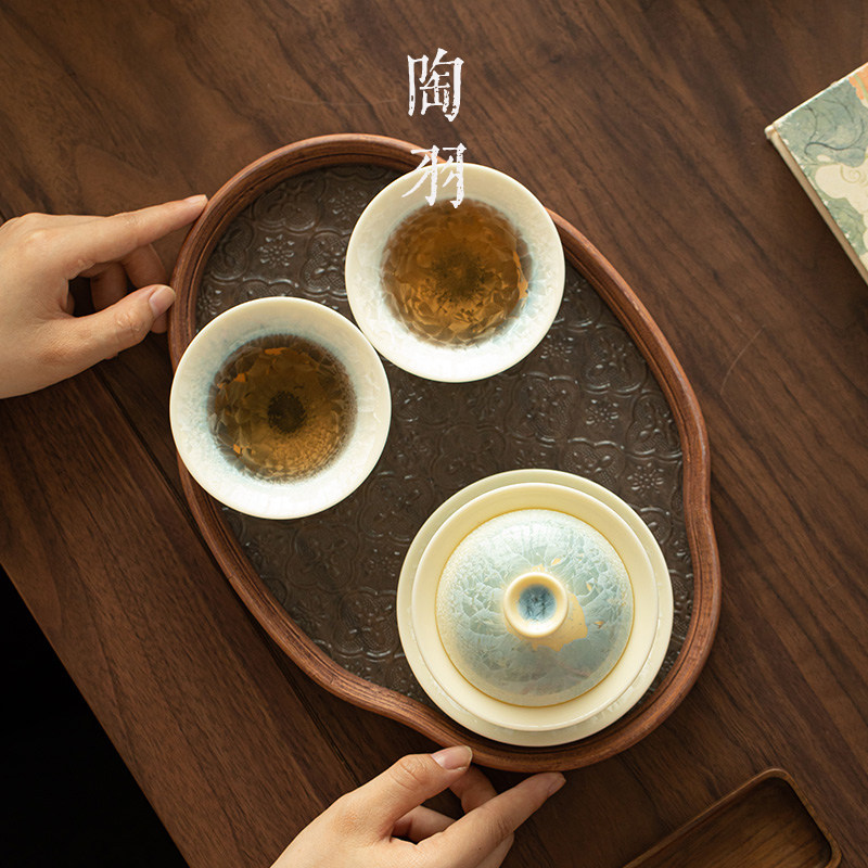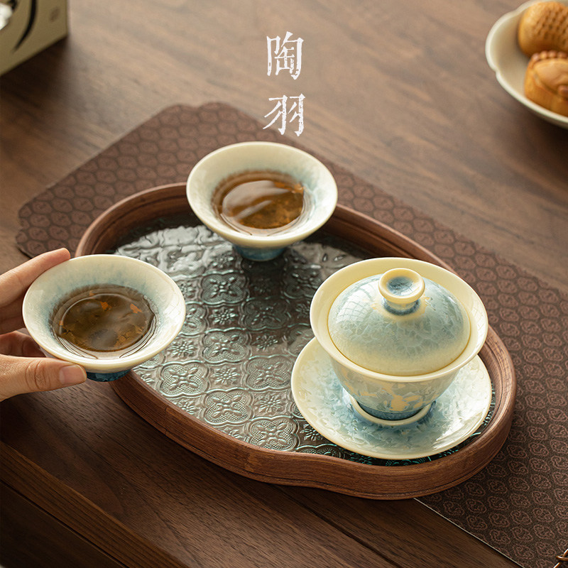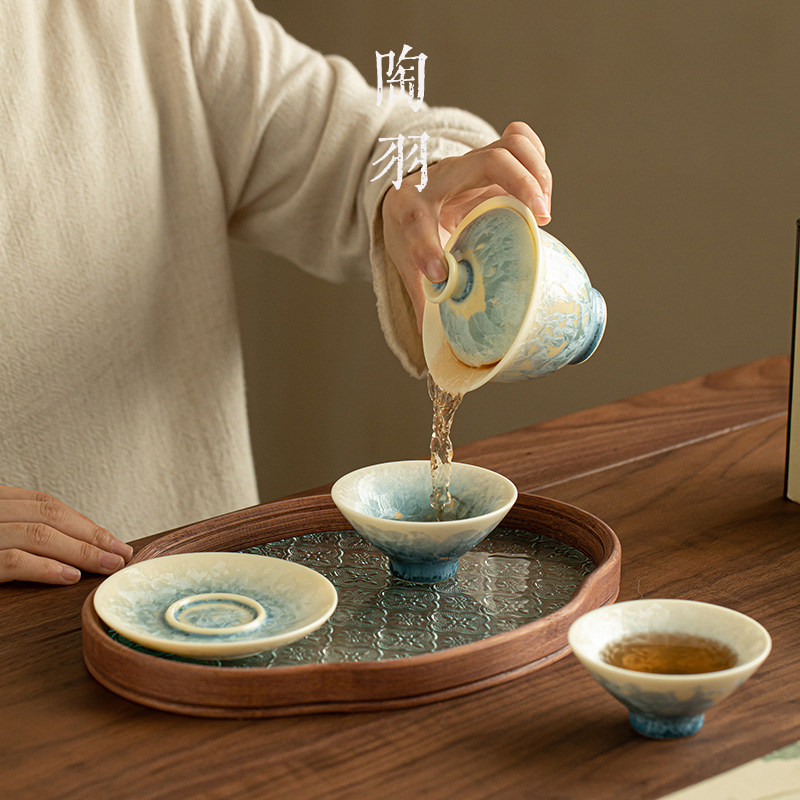 家用茶碗茶杯茶盘 结晶釉三才盖碗一壶两杯陶瓷泡茶器功夫茶具套装由