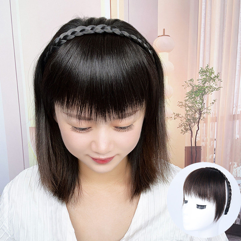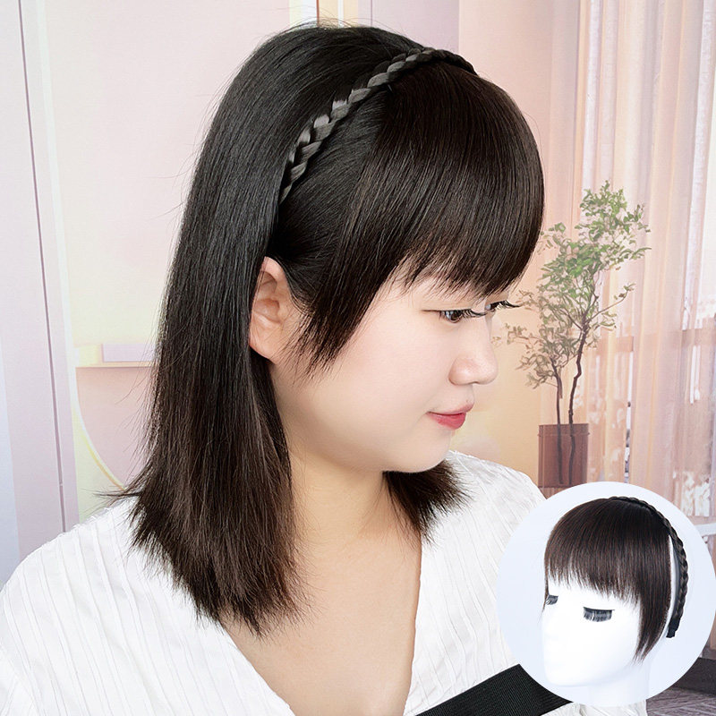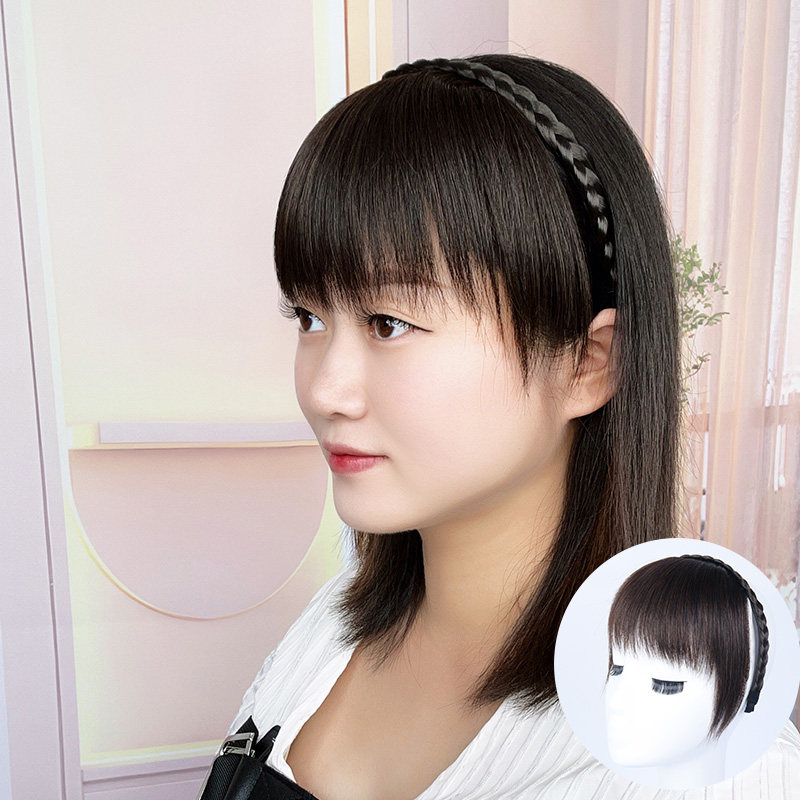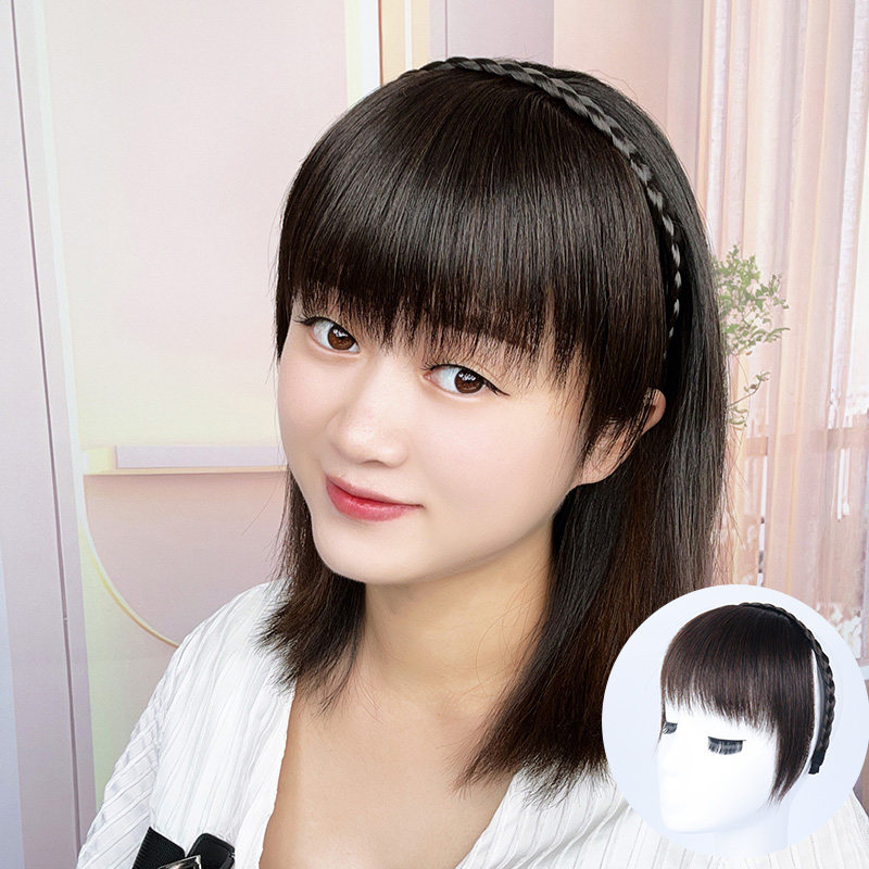 辫子发箍刘海一体真发碎齐头帘前额鬓角遮白发假发片女 2025新款