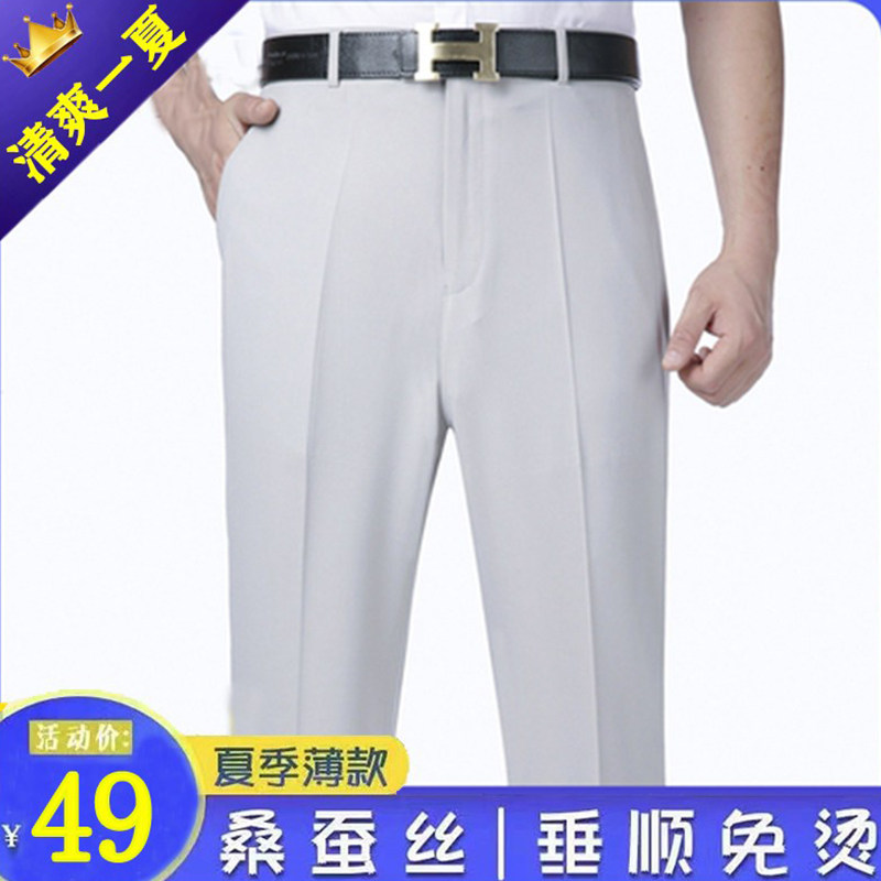 直筒宽松中年爸爸高腰免烫西装 高档桑蚕丝男士 西春夏季 薄款 子 男裤由