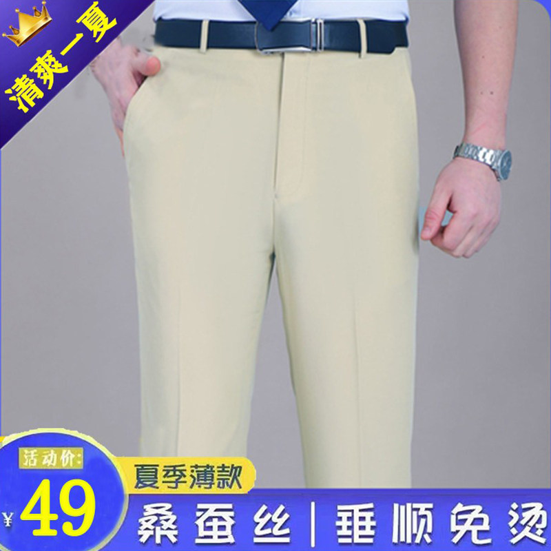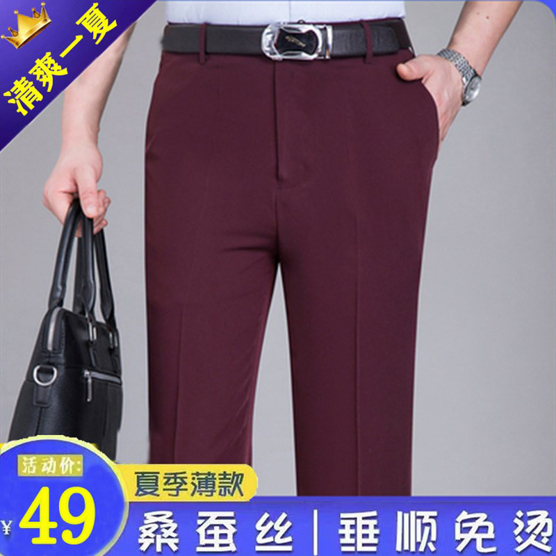 直筒宽松中年爸爸高腰免烫西装 高档桑蚕丝男士 西春夏季 薄款 子 男裤