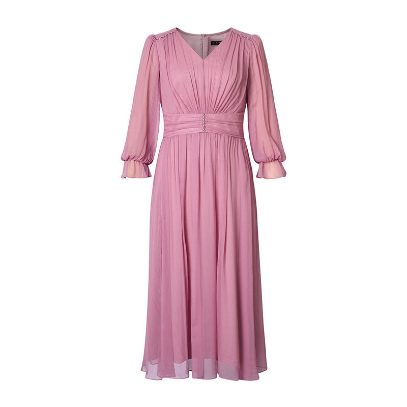 新款 100桑蚕丝v领灯笼袖 连衣裙女 Koradior拉珂蒂2025商场同款