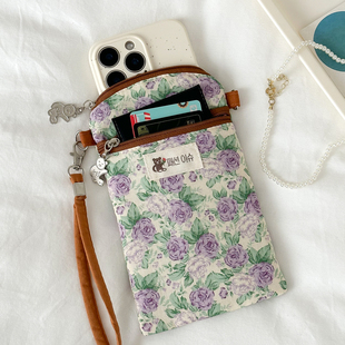 紫鸢温柔 手机袋休闲零钱包散步小包 夏天斜挎包手机包女棉布竖款