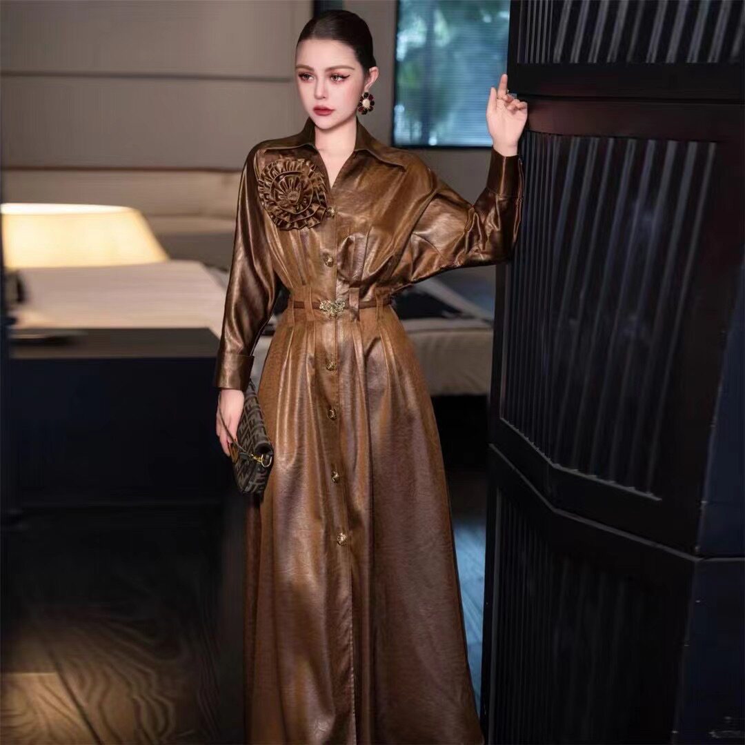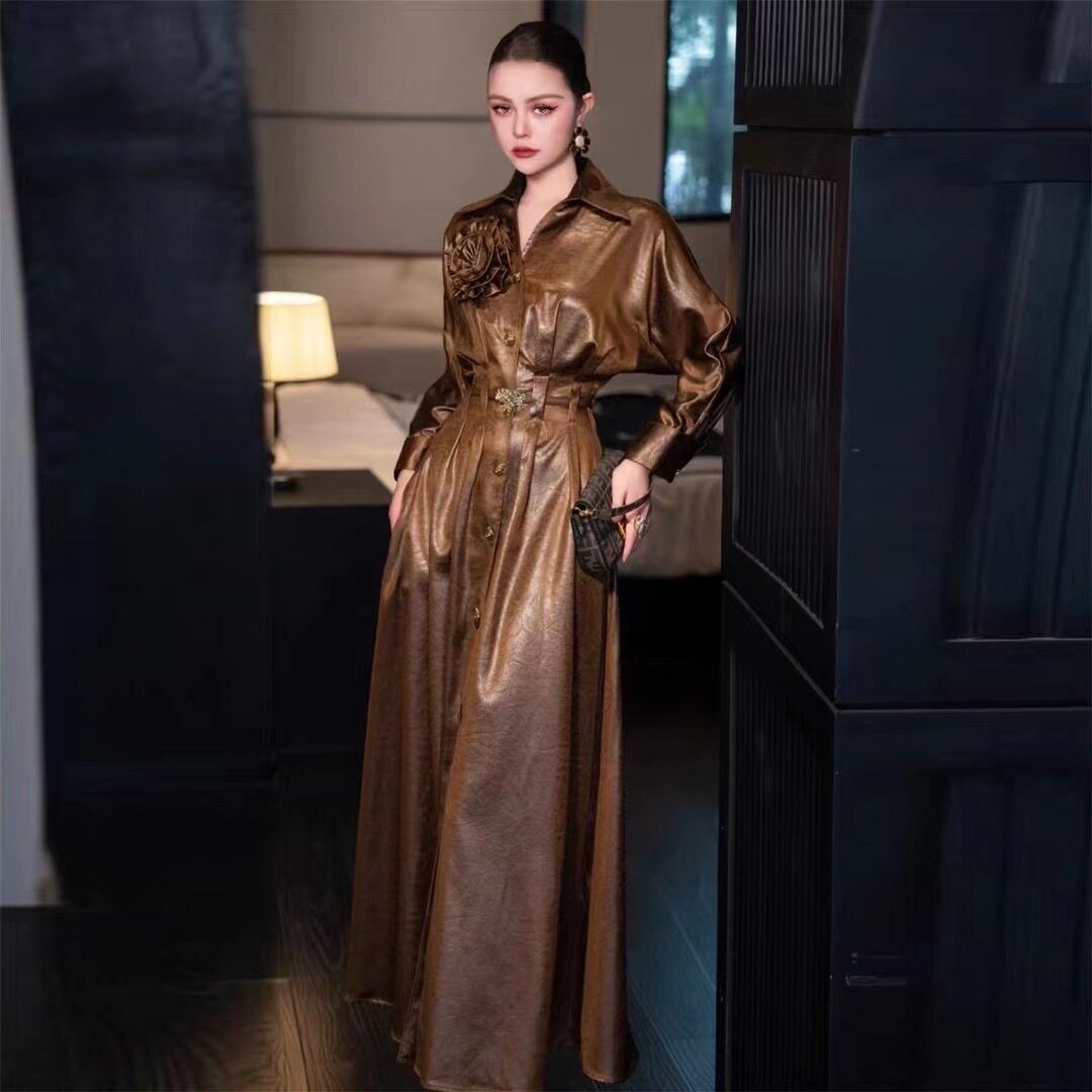 高端轻奢单排扣风衣裙2024秋冬款 连衣裙BD 名媛气质女人味收腰长款