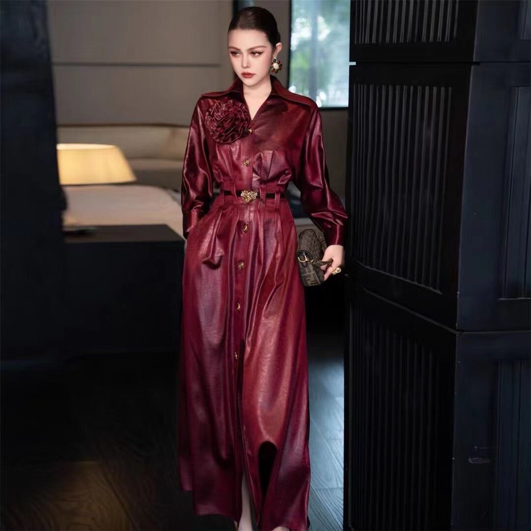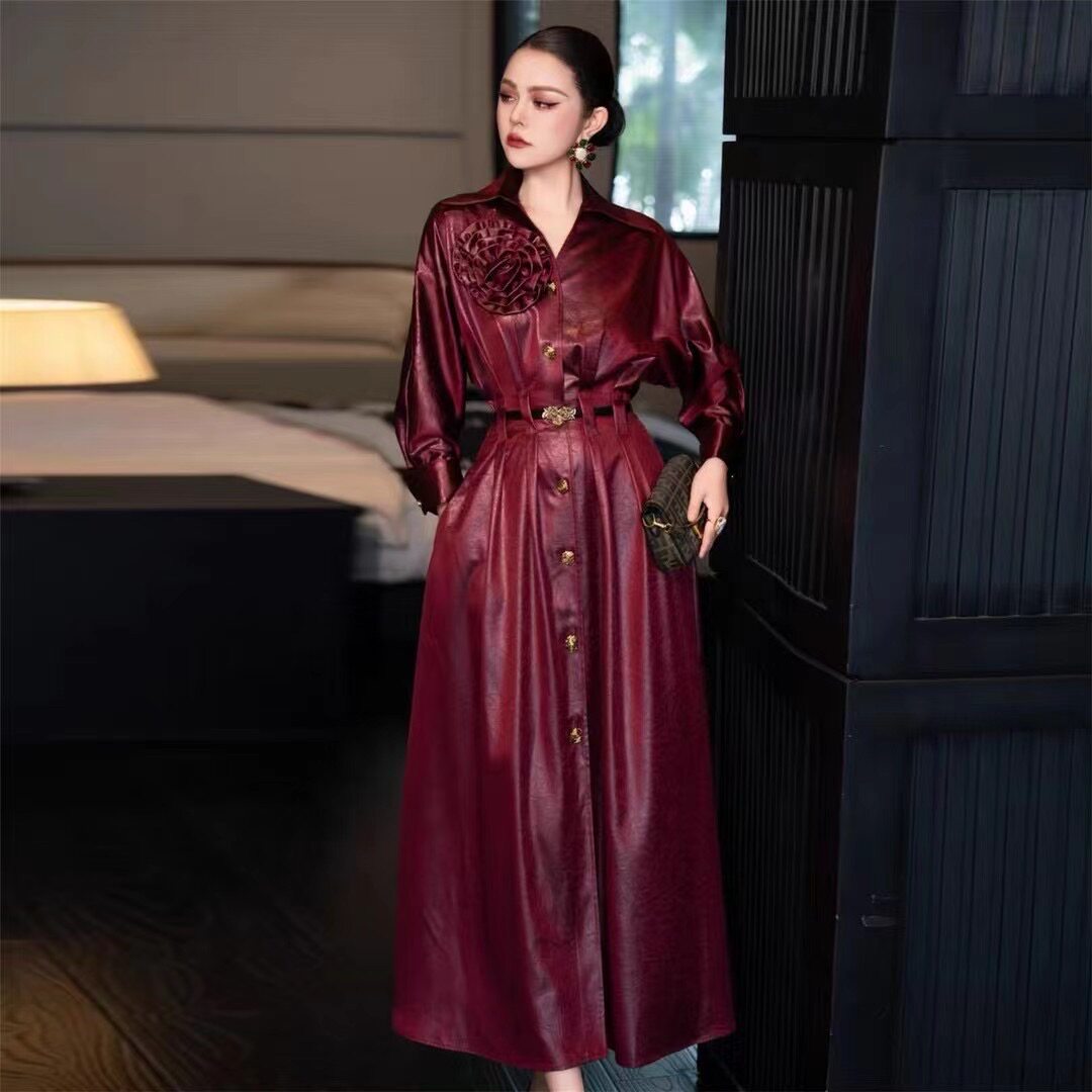 高端轻奢单排扣风衣裙2024秋冬款 连衣裙BD 名媛气质女人味收腰长款由