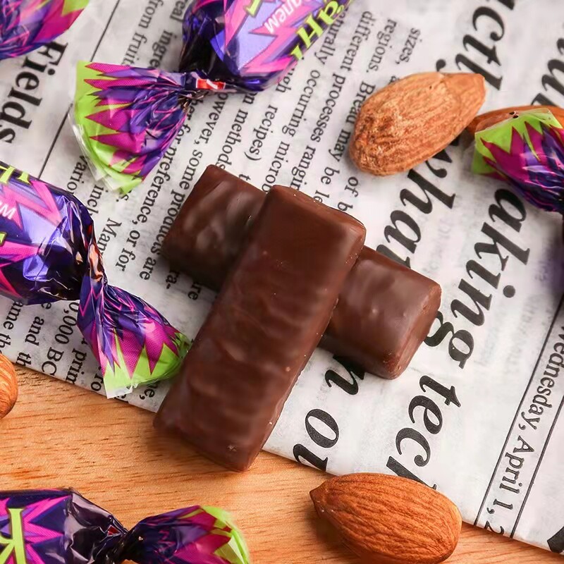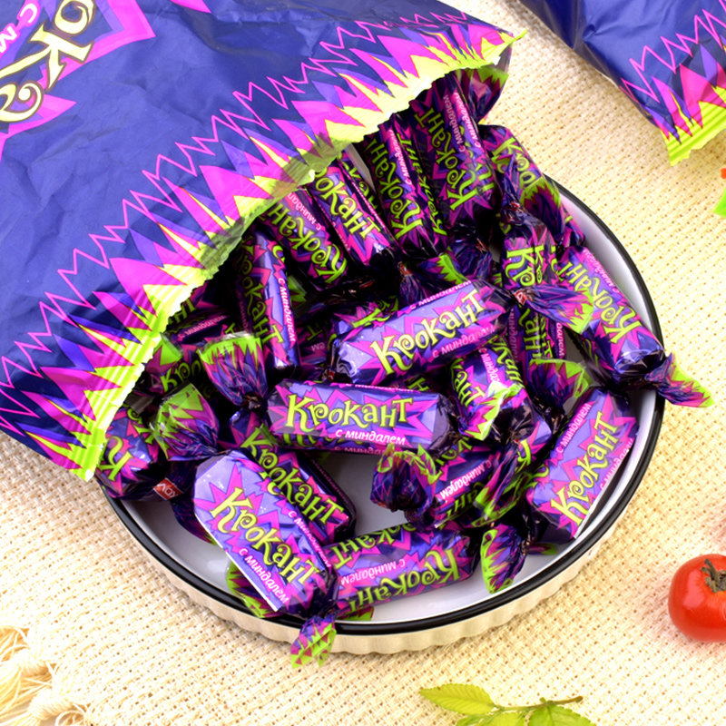 俄罗斯原装 进口KDV紫皮糖巧克力味夹心年糖喜糖果500g 新日期由