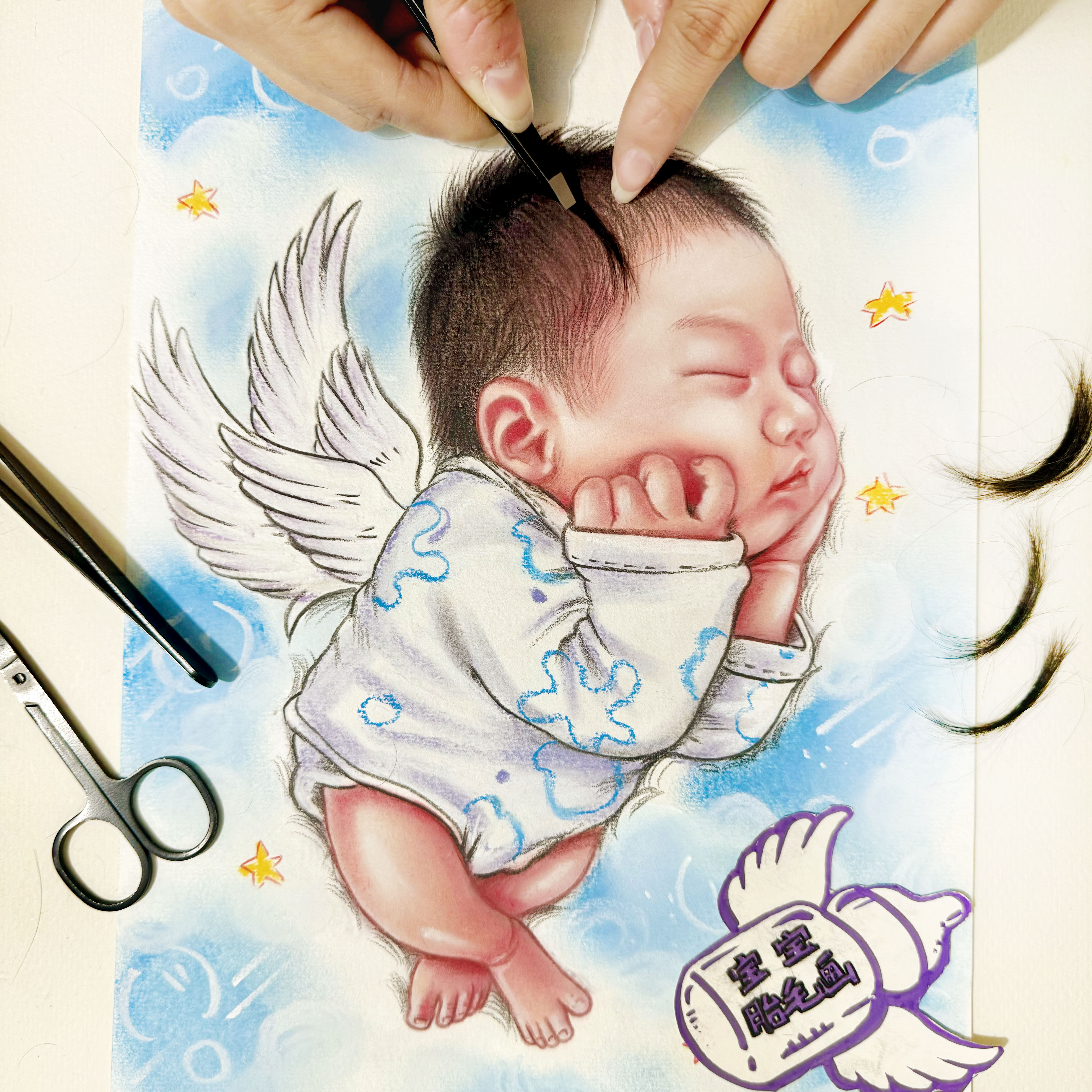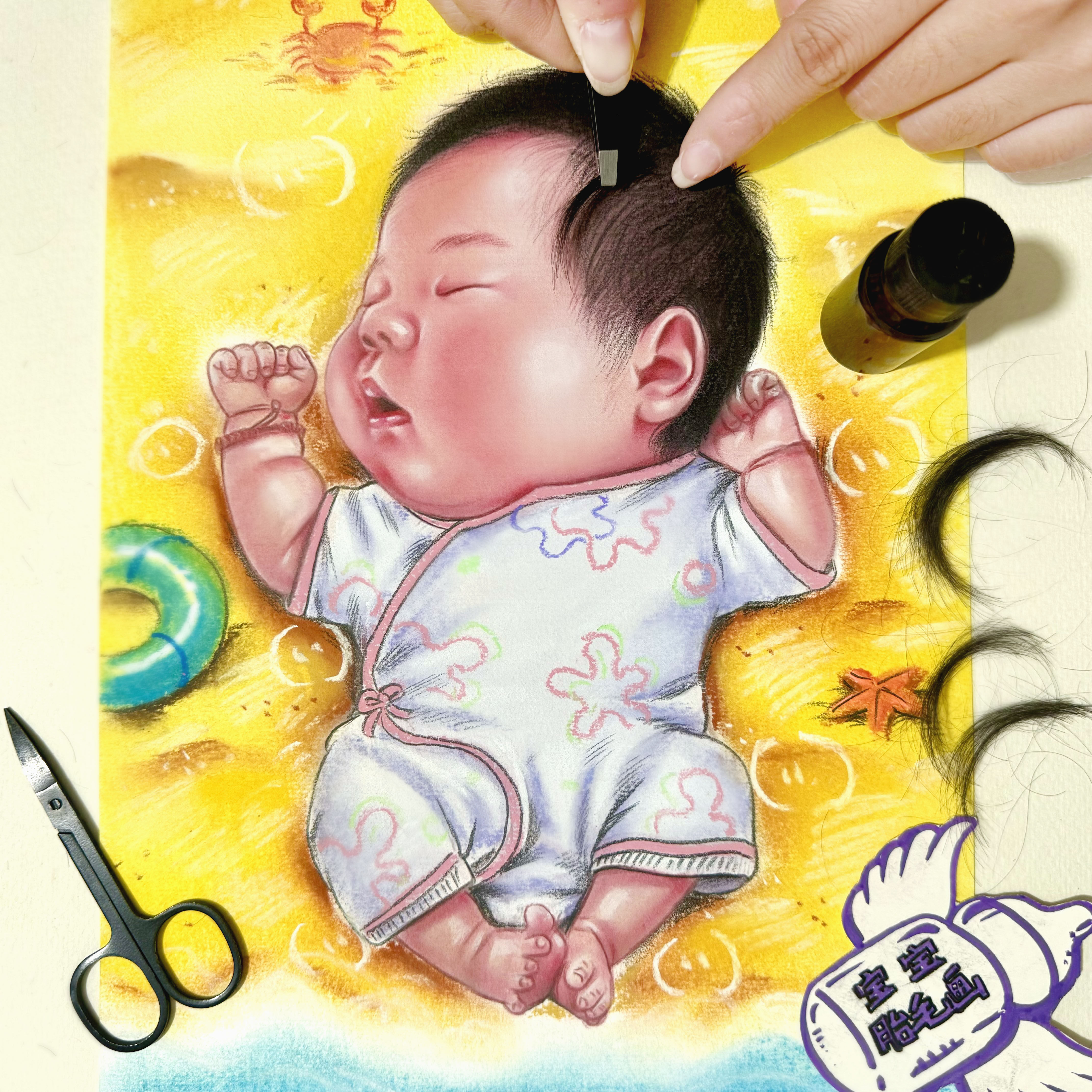 泓光怡胎毛画制作龙宝宝胎发纪念品定制相框新生婴儿满月留念diy