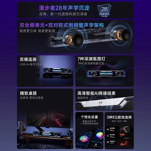 Soundbar桌面蓝牙音箱游戏电脑音响大音量高音质花再 漫步者Halo