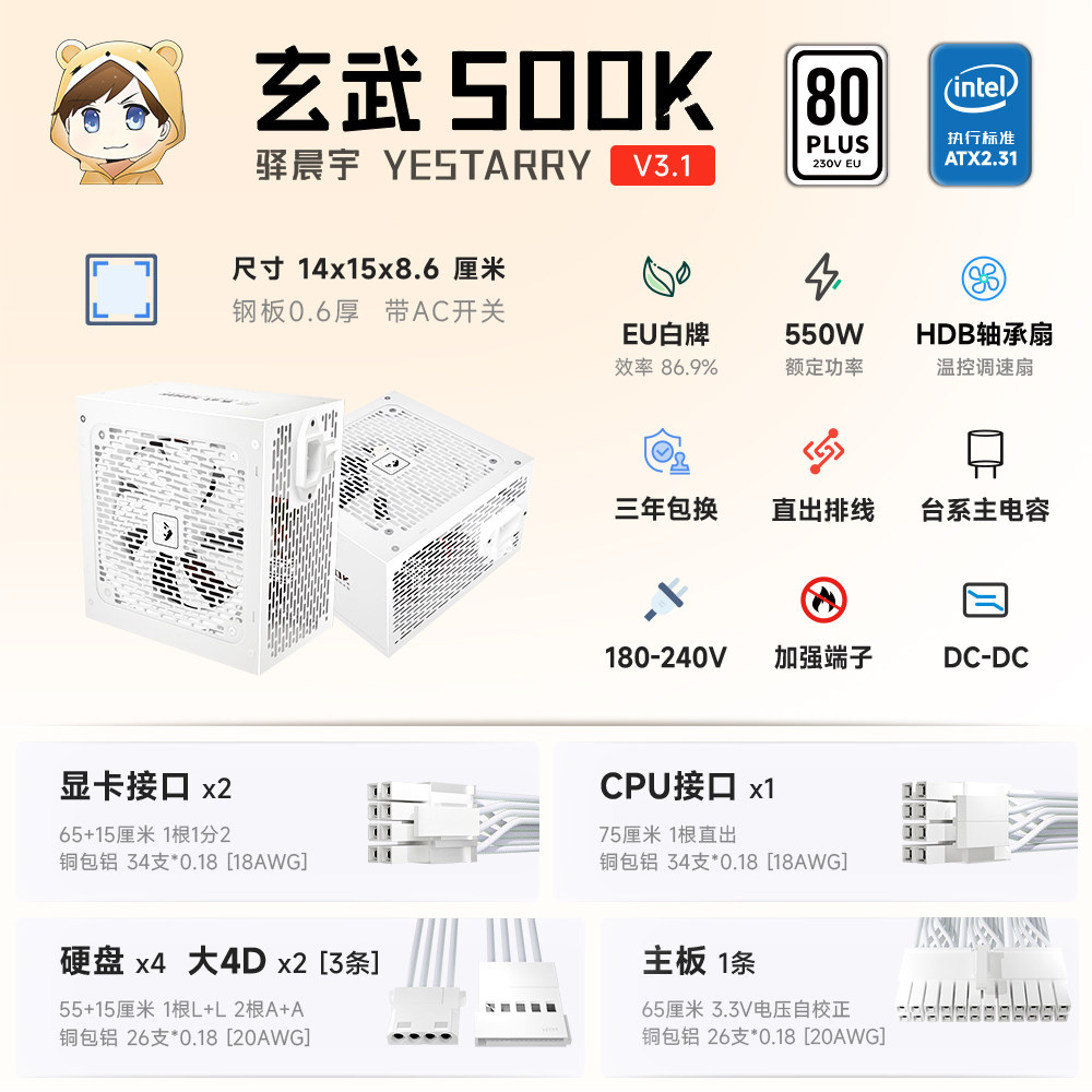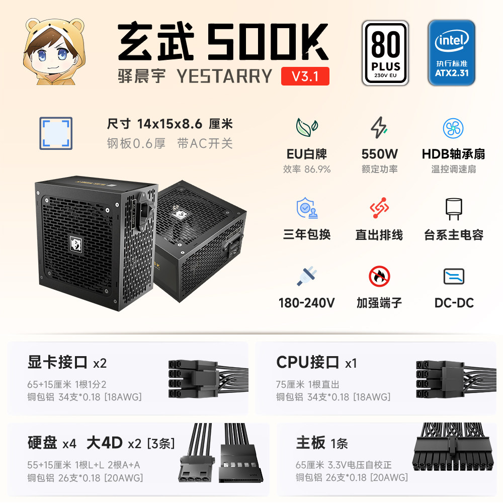 为您提供商品电源电竞静音节能稳定台系电容 驿晨宇玄武500K额定550W高功率台式的详细介绍,