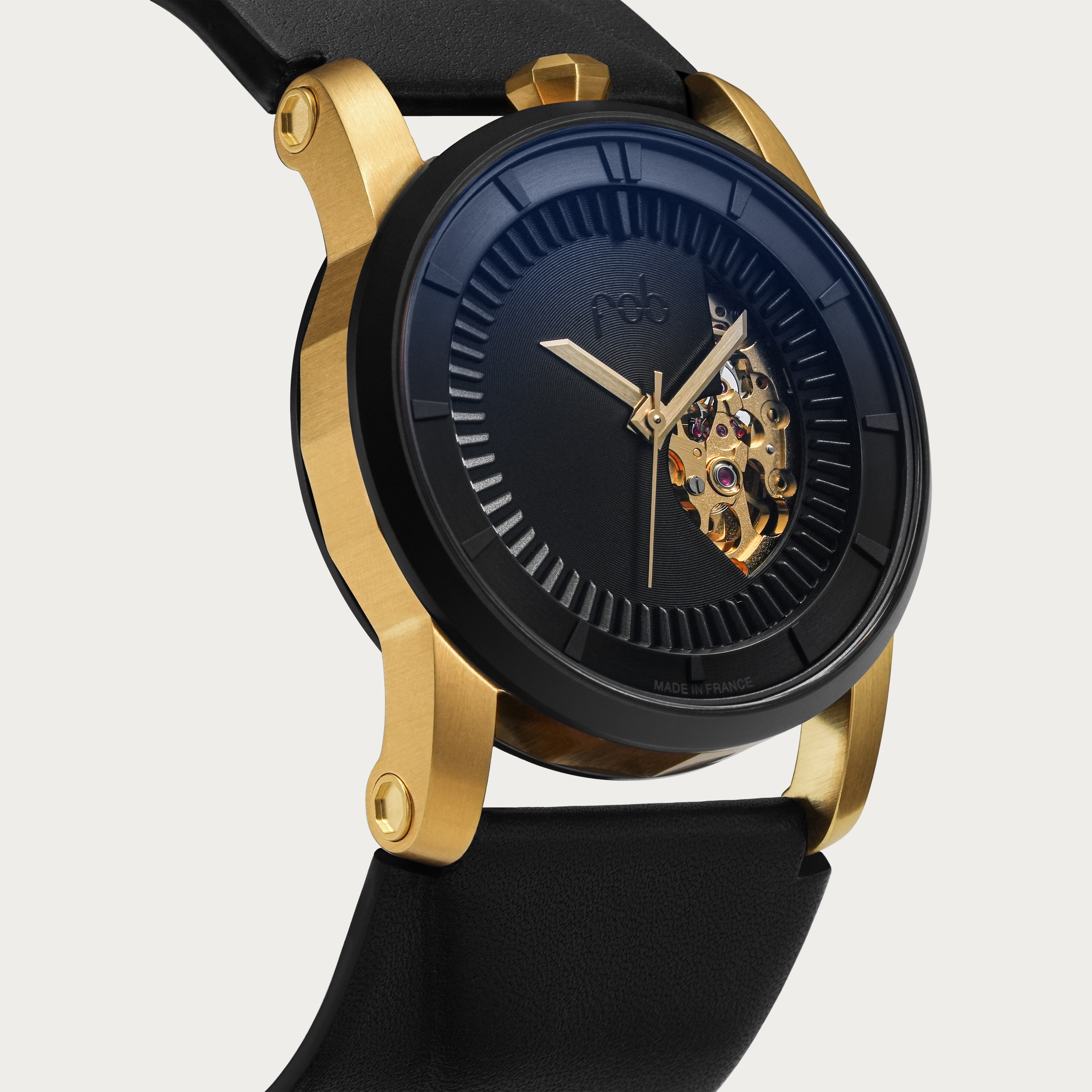 R413法国进口黄金镂空大表盘机械表真皮表带腕表 FOB手表男女同款由