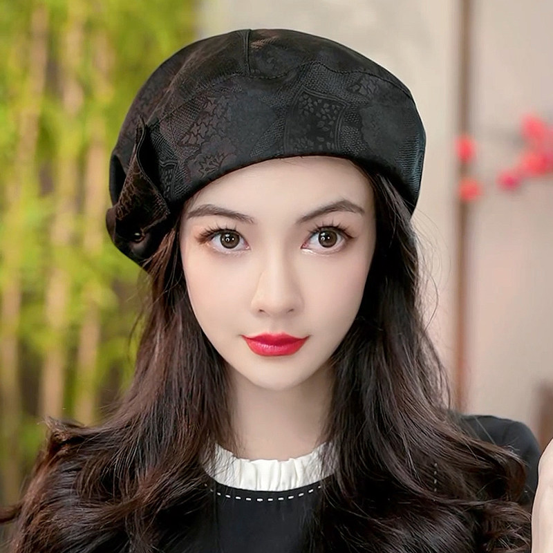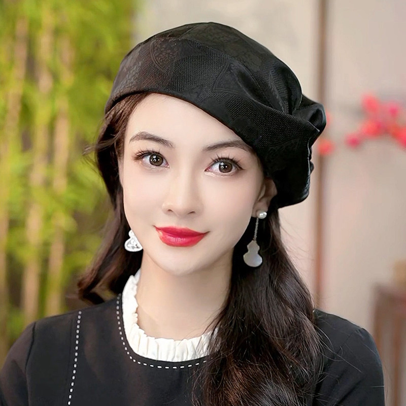 布塔春夏季 百搭 扭结帽女香云纱花萝帽真丝贝雷帽100%桑蚕丝帽时尚