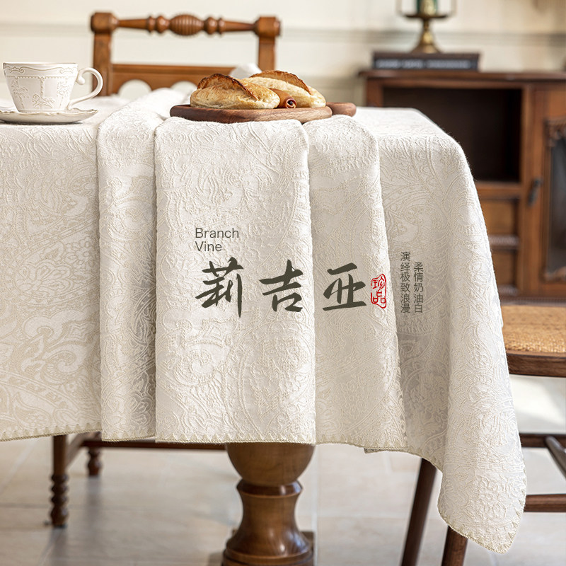 立体提花桌布防水餐桌布法式 饰餐桌垫布氛围感茶几台布艺 高级感装由