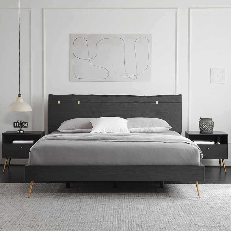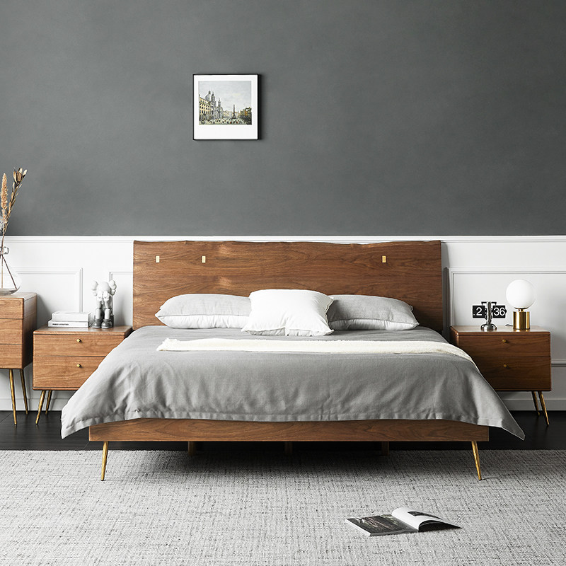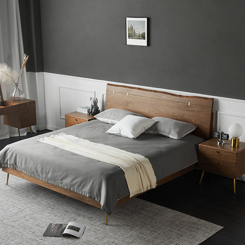 为您提供商品实木轻奢床黑色1.8米双人床北欧现代简约复古主卧胡桃木1.5米大床的详细介绍,