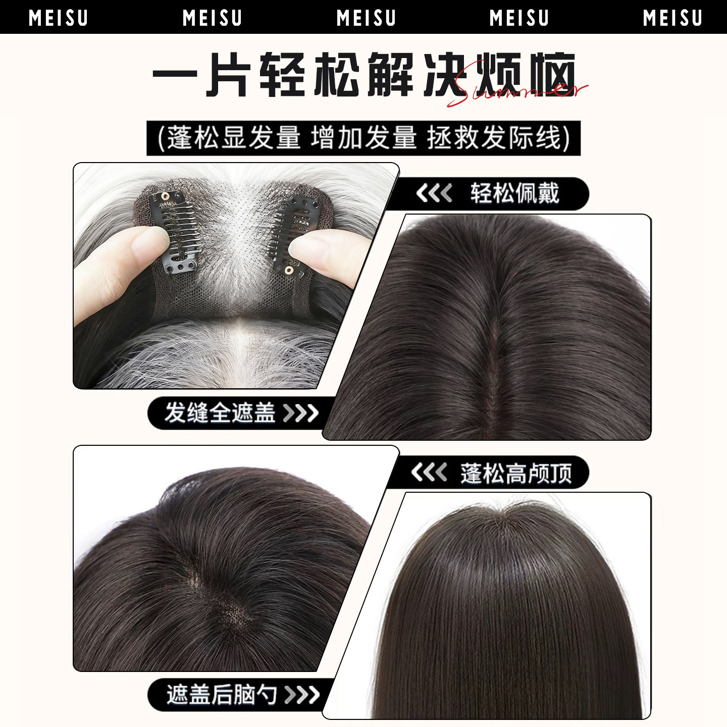 刘海片 高颅顶假发片女增发量蓬松真发遮头顶白发 双递针法式 美禾