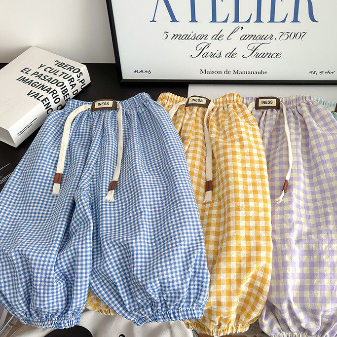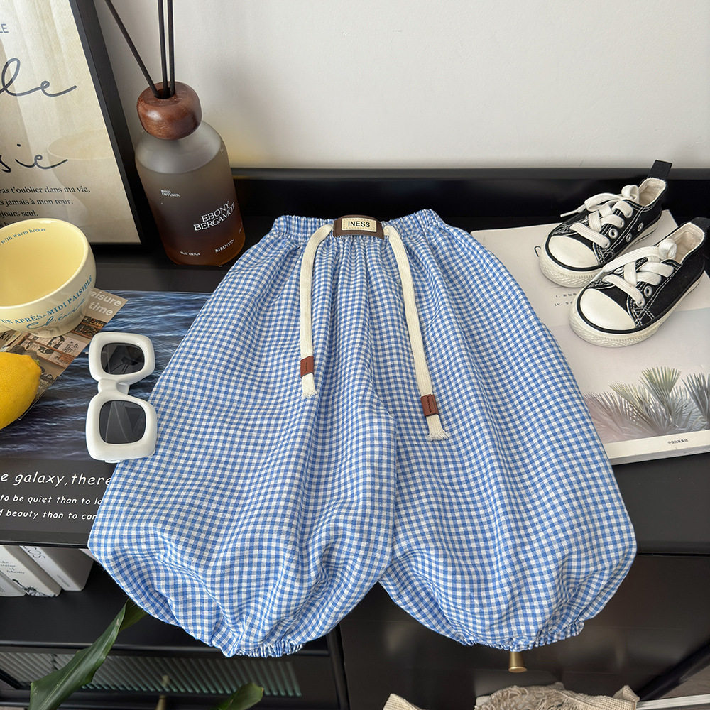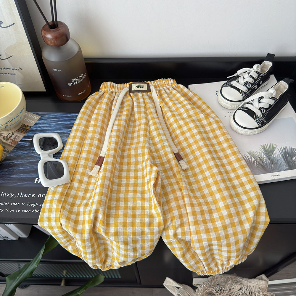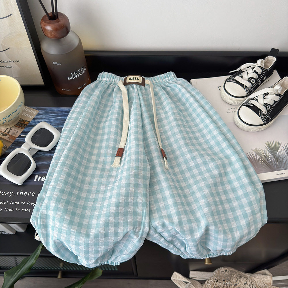 宝宝长裤 儿童透气棉布裤 女童百搭格子灯笼裤 男童防蚊裤 子夏季 薄款由