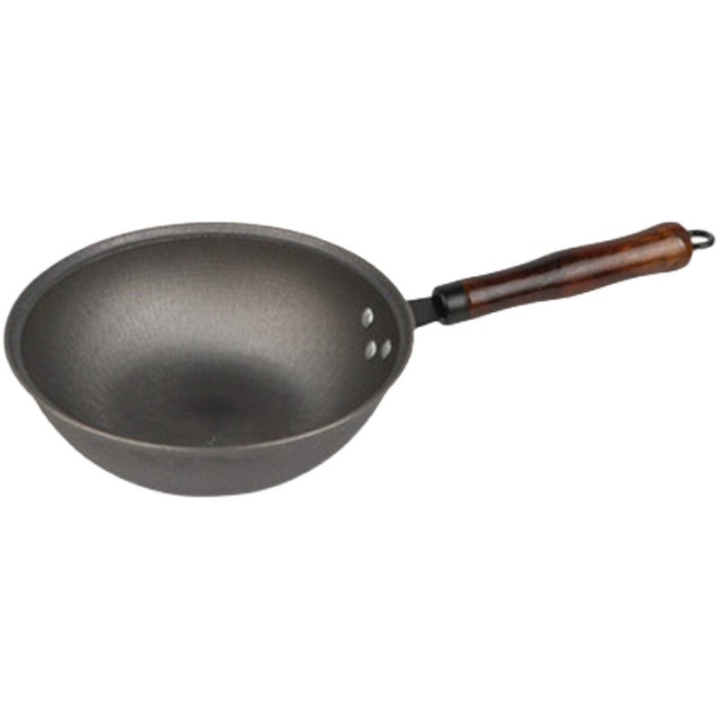 铸铁小炒锅榉木手柄炒锅无涂层宝宝辅食铁锅生铁锅炒菜锅