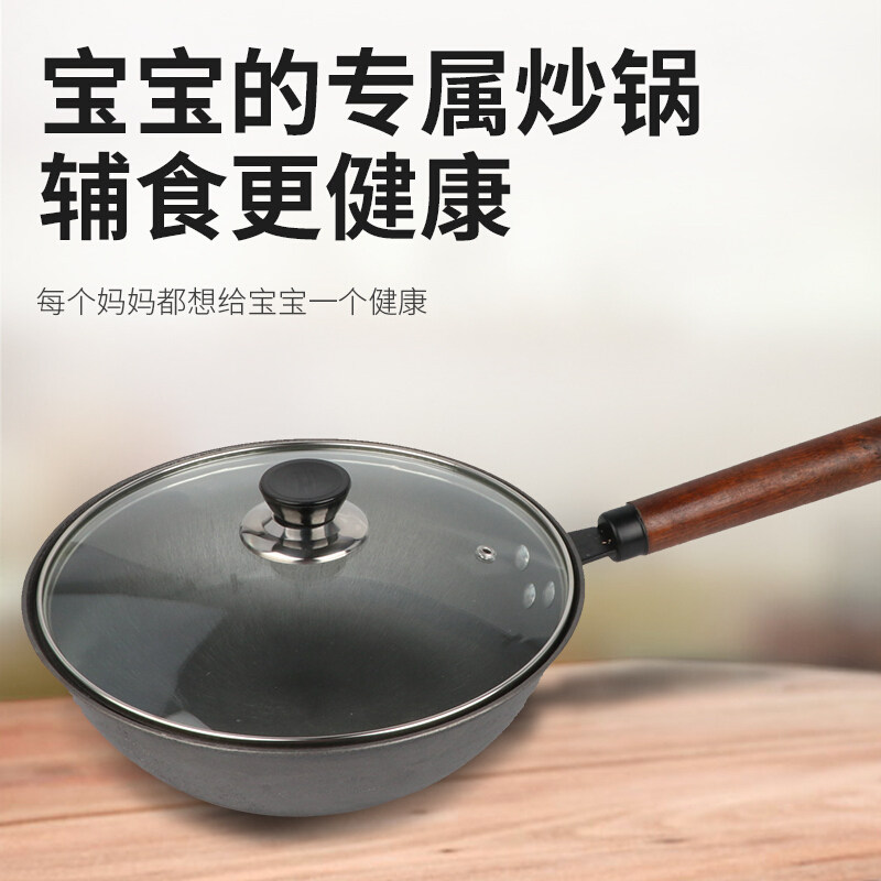 为您提供商品铸铁小炒锅榉木手柄炒锅无涂层宝宝辅食铁锅生铁锅炒菜锅的详细介绍,