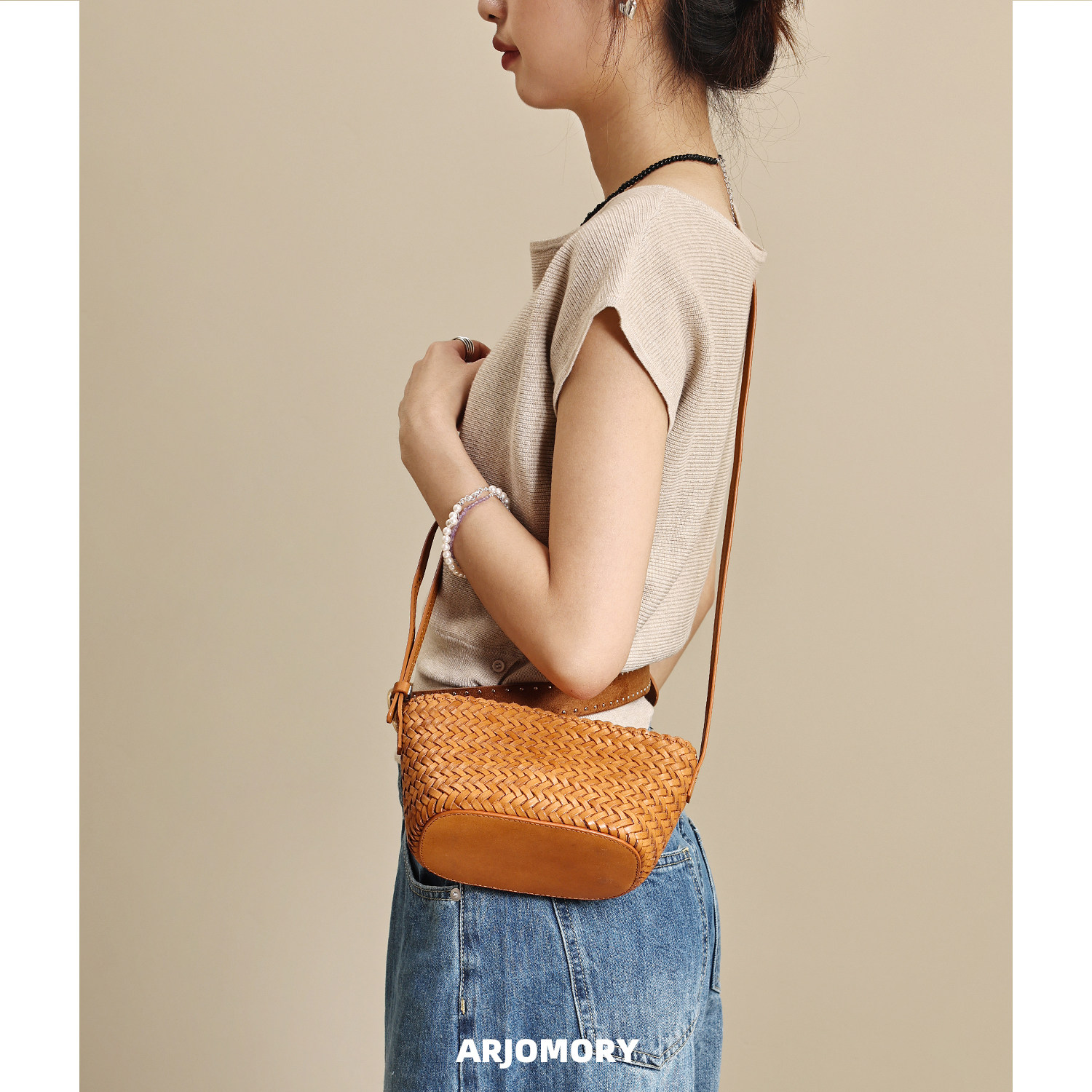 为您提供商品ARJOMORY原创设计高级感头层牛皮手工编织菜篮子包女2026斜挎小包的详细介绍,