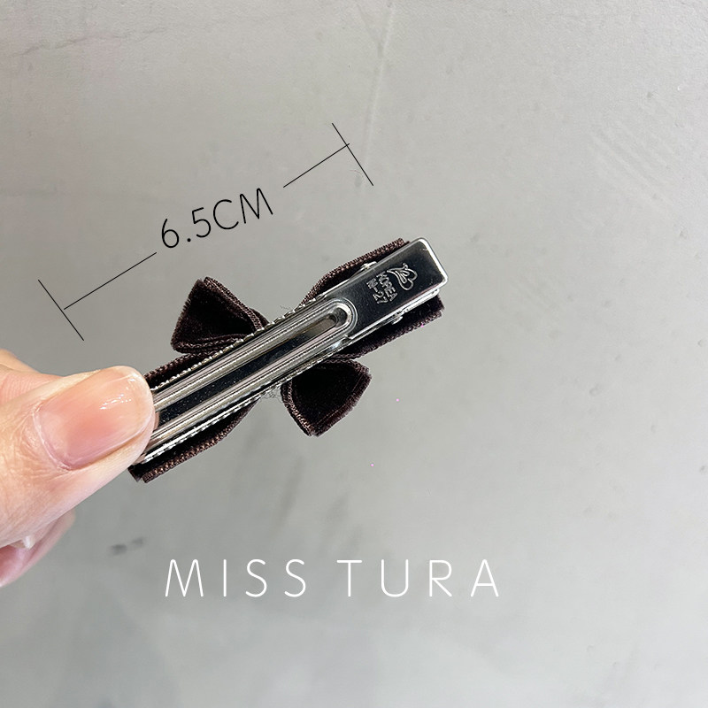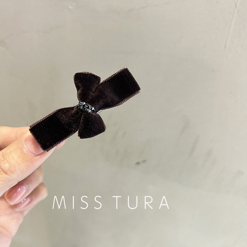 Tura韩国进口丝绒蝴蝶结带钻质感鸭嘴夹刘海夹侧边发夹 Miss