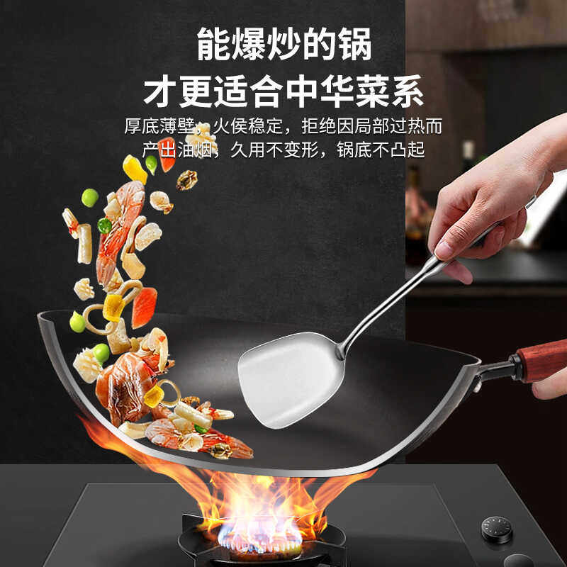 炒锅家用不粘锅无涂层燃气灶适用 章丘炒菜锅传统铁锅官方旗舰老式
