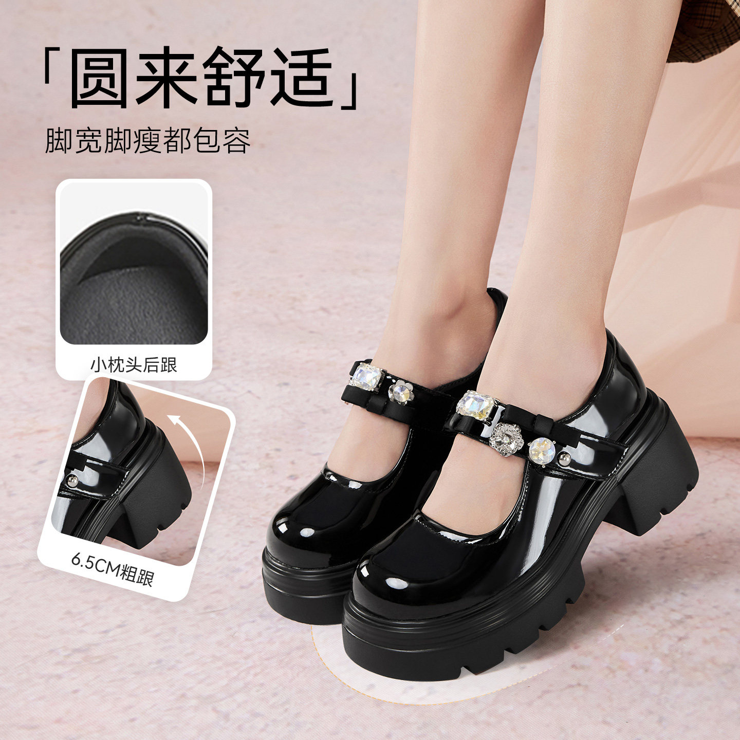 百搭浅口单鞋 羊皮版 真皮圆头山茶花内增高玛丽珍鞋 女法式 小皮鞋