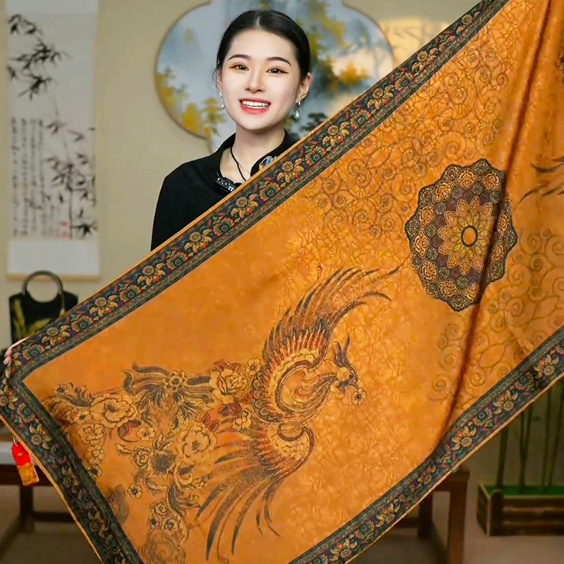 复古围巾 轻奢高级感香云纱披肩搭配旗袍春秋气质百搭花萝丝巾时尚