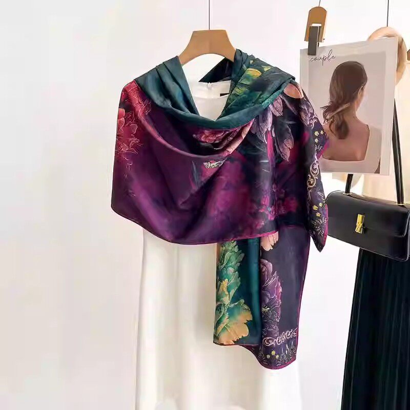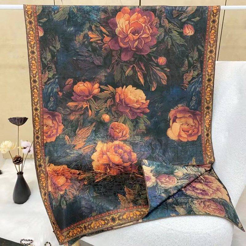 为您提供商品复古围巾 轻奢高级感香云纱披肩搭配旗袍春秋气质百搭花萝丝巾时尚的详细介绍,