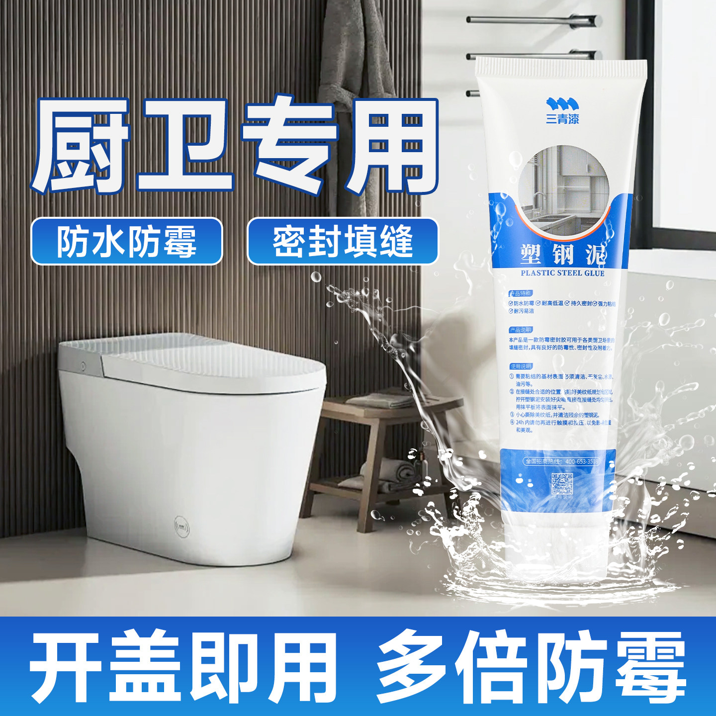 为您提供商品塑钢泥防水防霉厨卫密封胶浴室防水卫生间缝隙美缝堵漏填缝剂速凝的详细介绍,