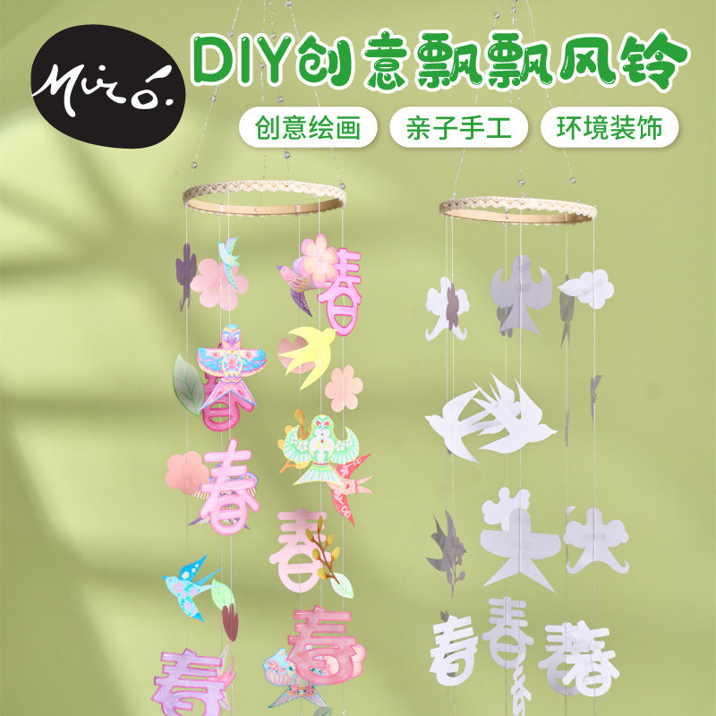 户外春天创意飘飘风铃手工diy儿童制作材料包幼儿园涂鸦美术环创