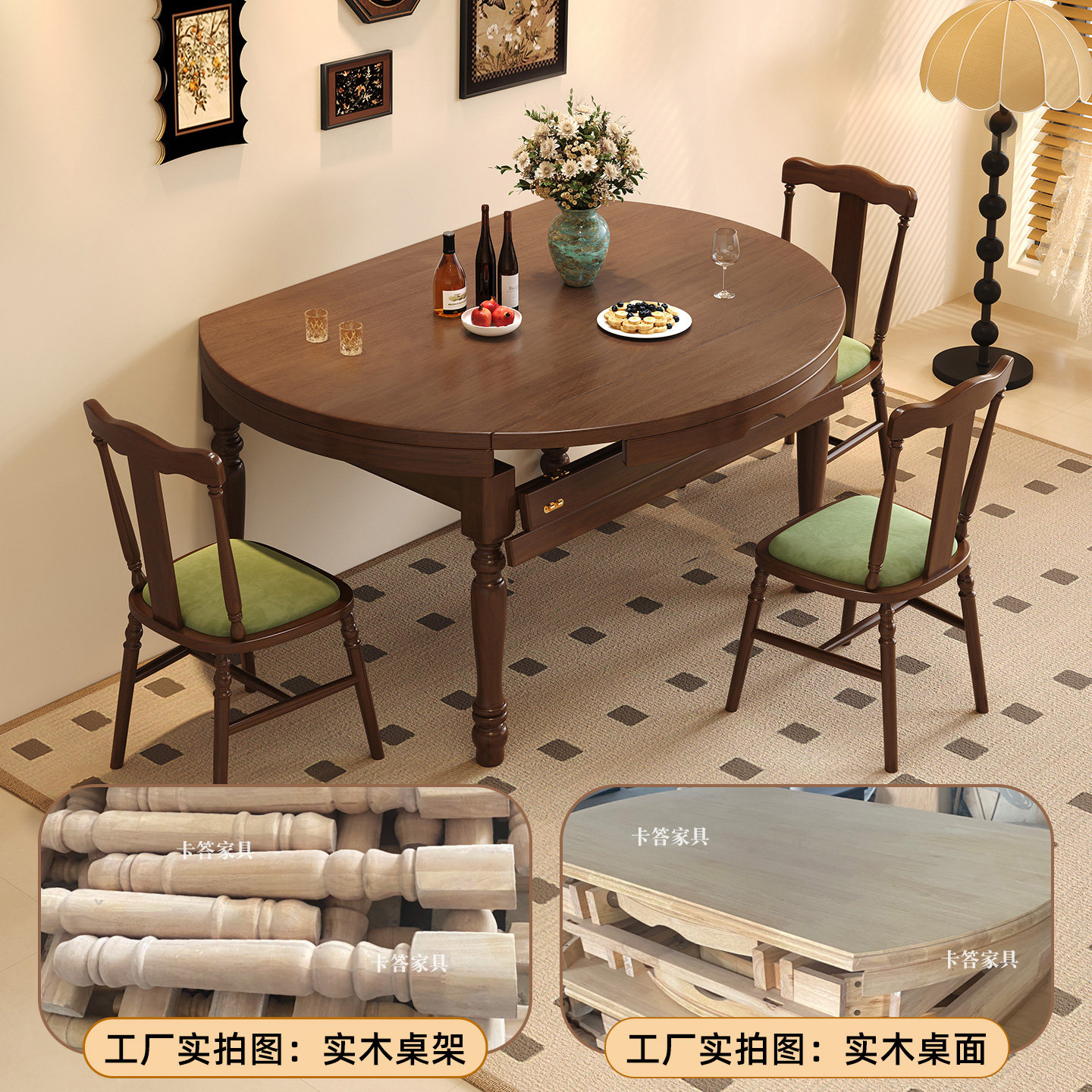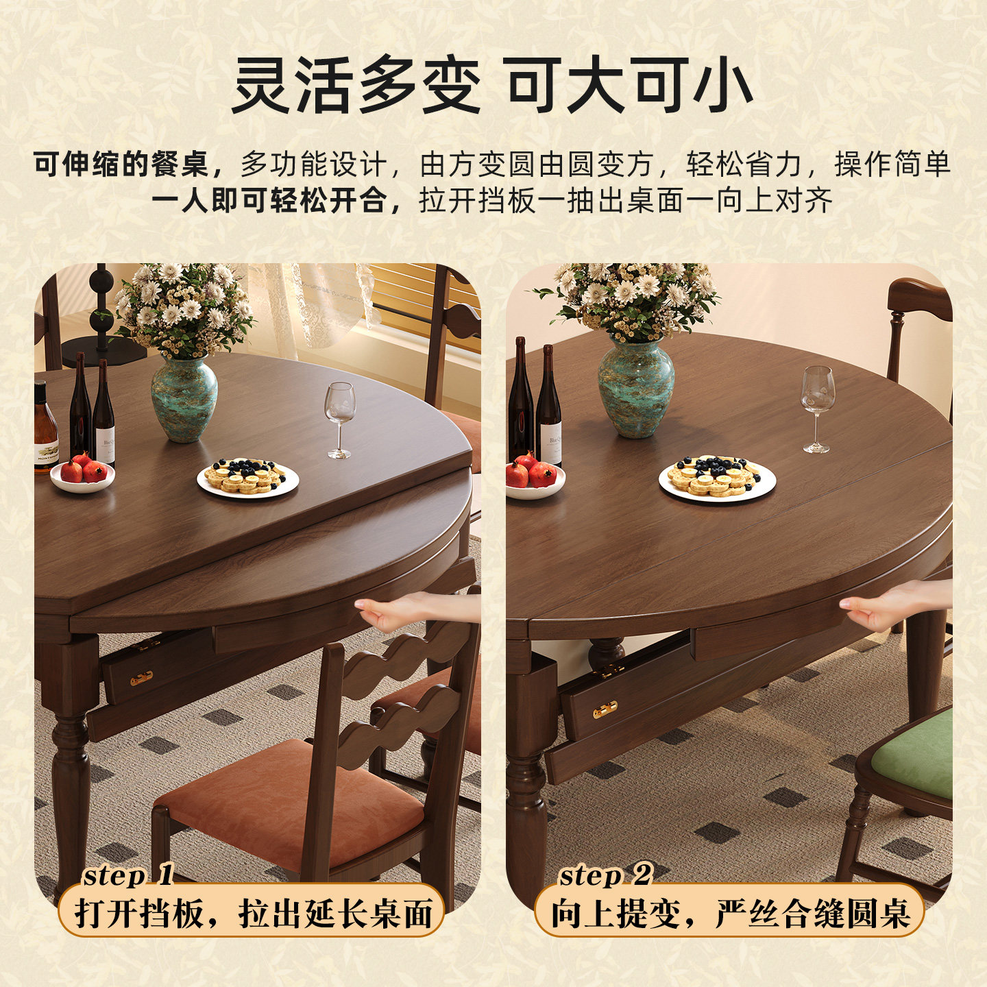 为您提供商品法式 折叠饭桌家用小户型 复古风可伸缩实木餐桌圆桌胡桃木色美式的详细介绍,