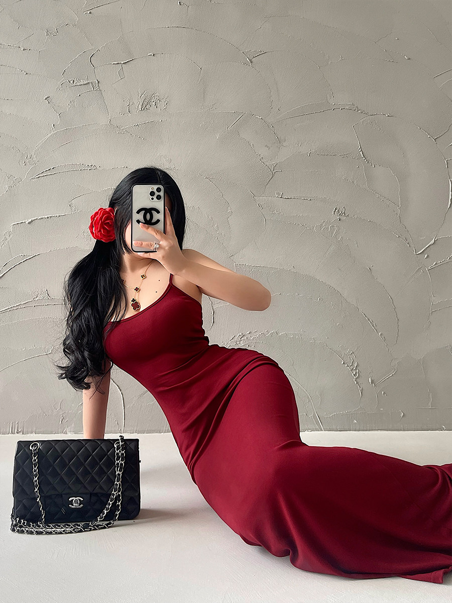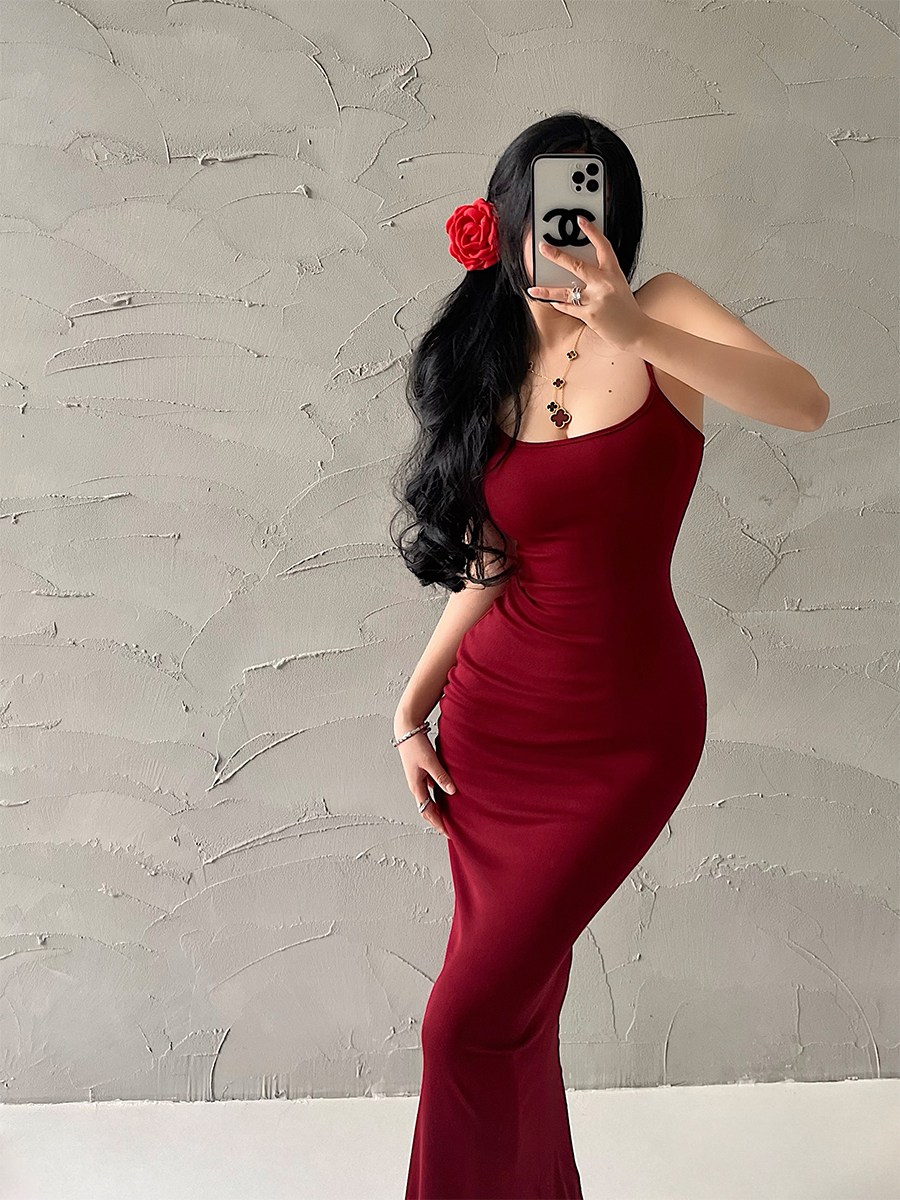 显瘦可调节肩带包臀鱼尾吊带连衣裙长裙 YoungGirlDay纯欲性感修身