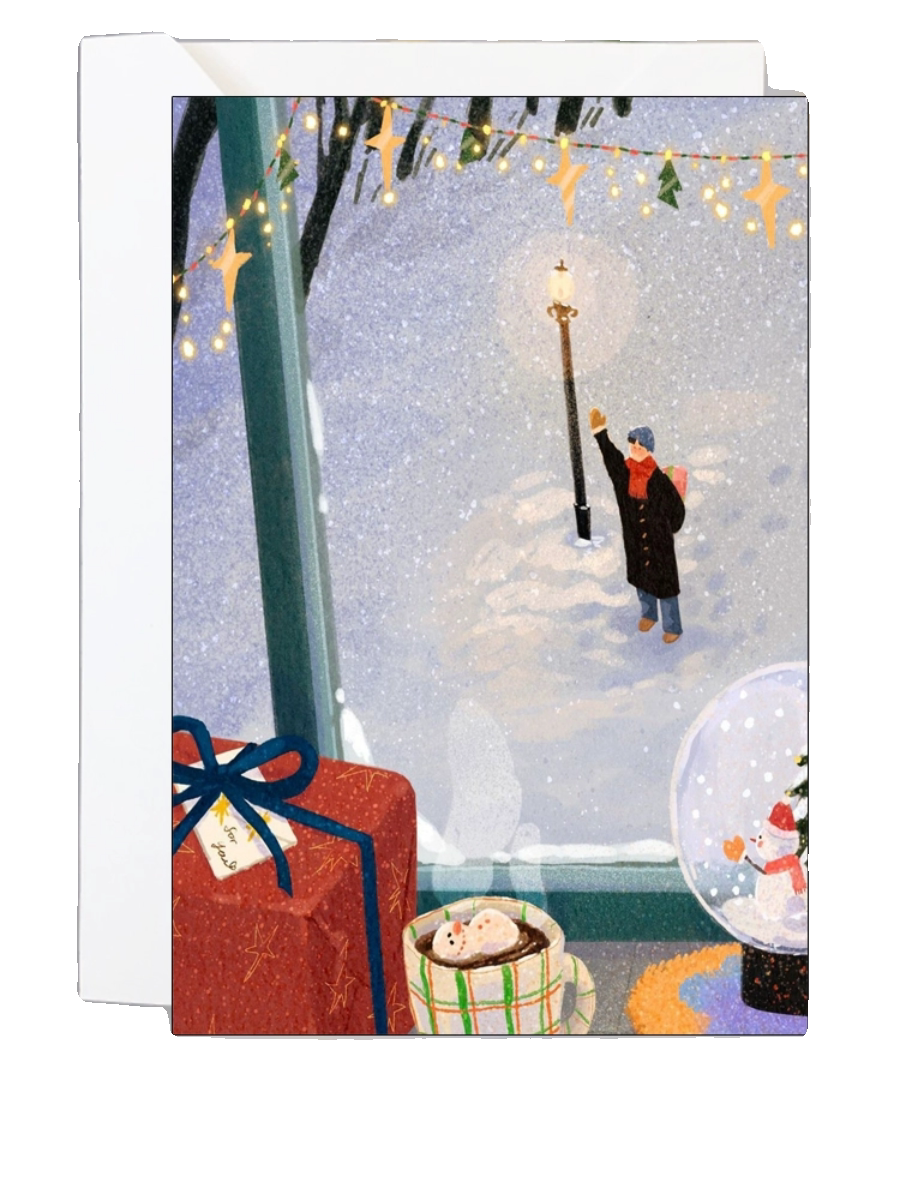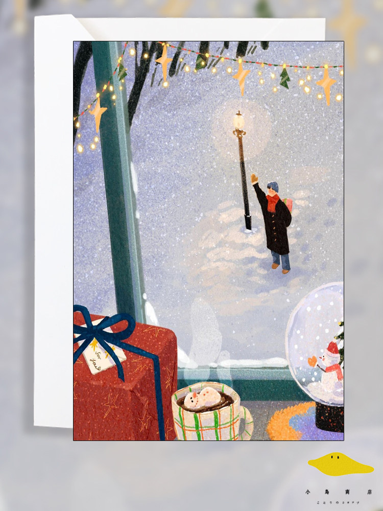 圣诞节情人节元 旦新年祝福卡片手绘情侣浪漫明信片 只想见你 现在